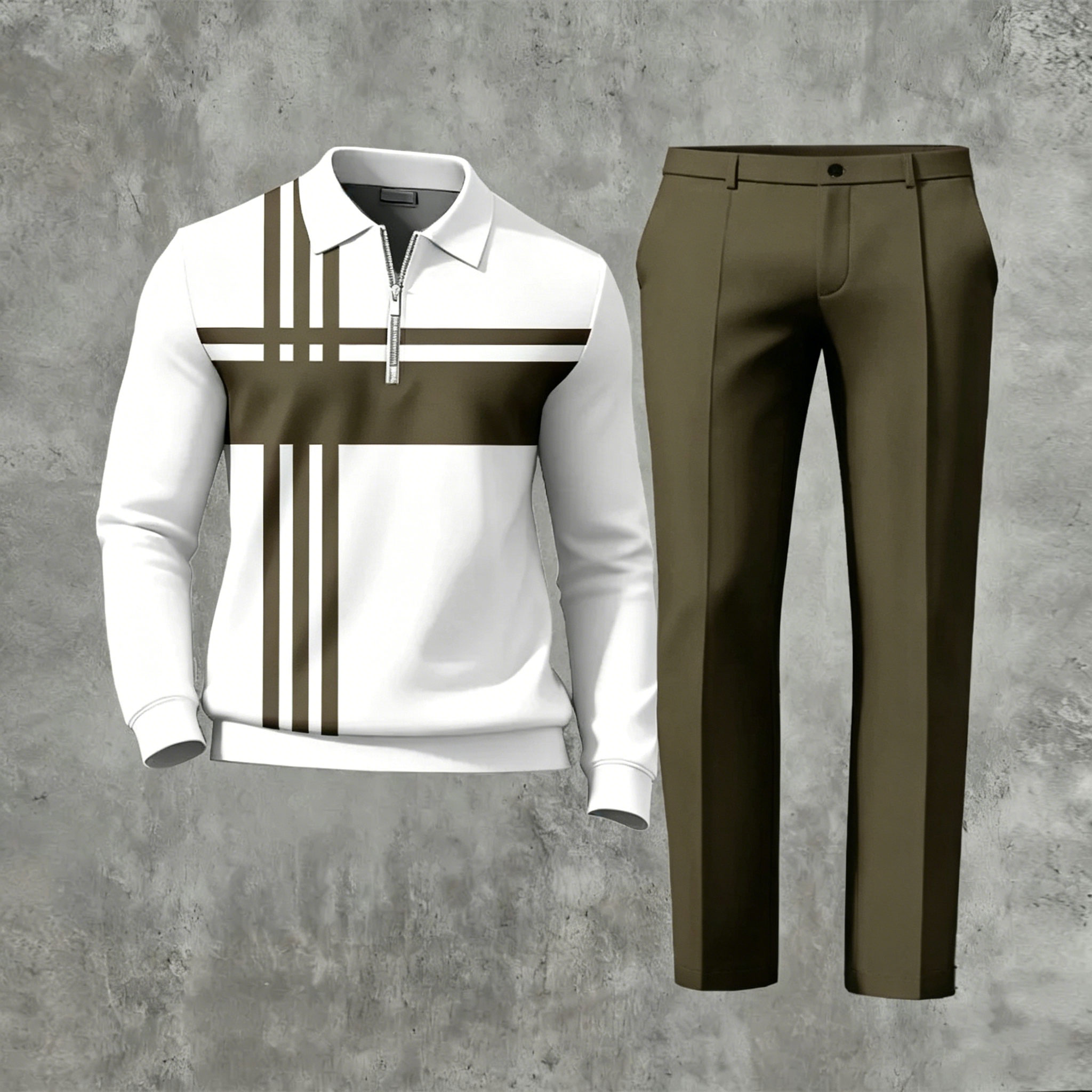 Men's Casual Brown Printed Polo Shirt And Pants Two-Piece Set