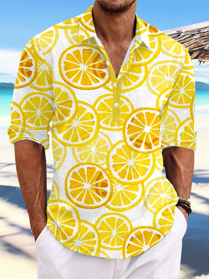 Men's Casual Hawaiian Pineapple Print Lapel Shirt