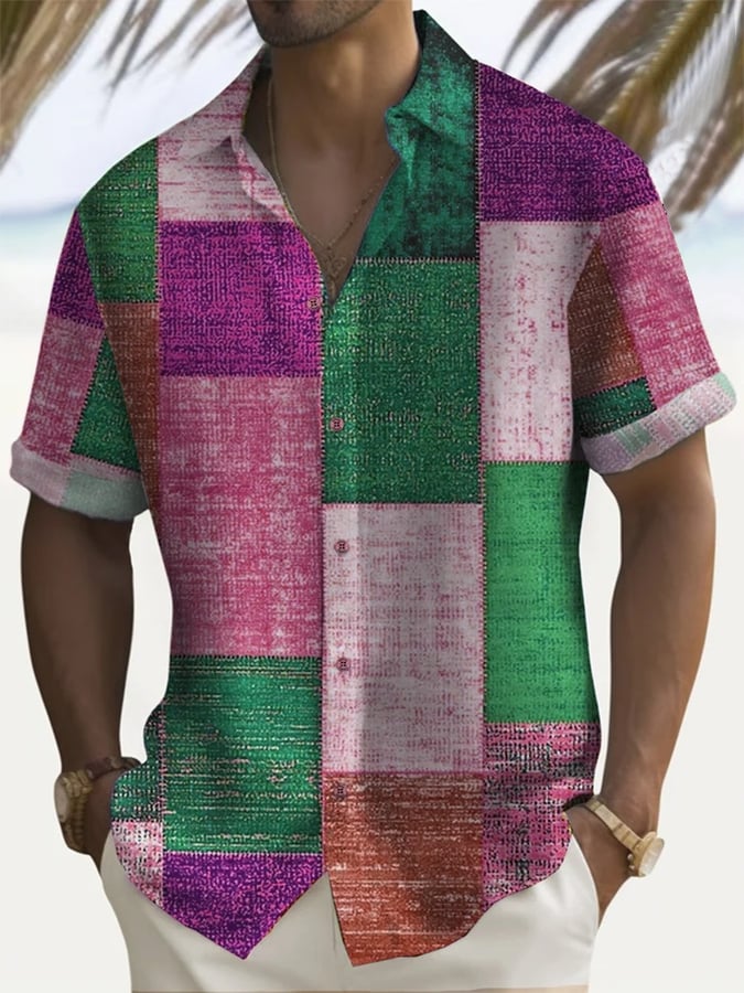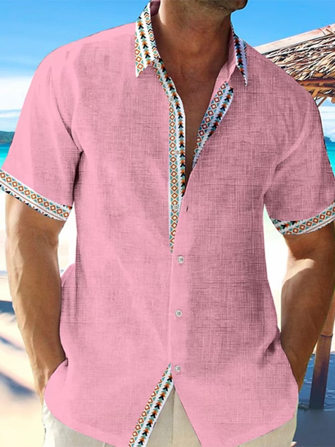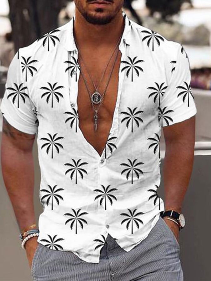 Men's Resort Style Contrast Print Casual Short Sleeve Shirt