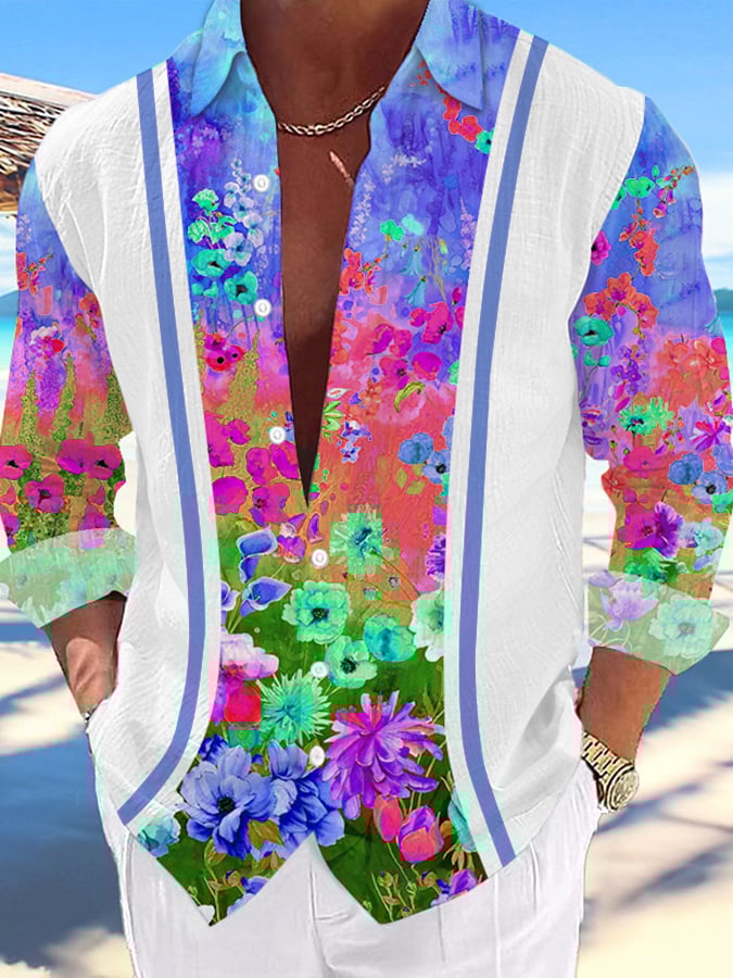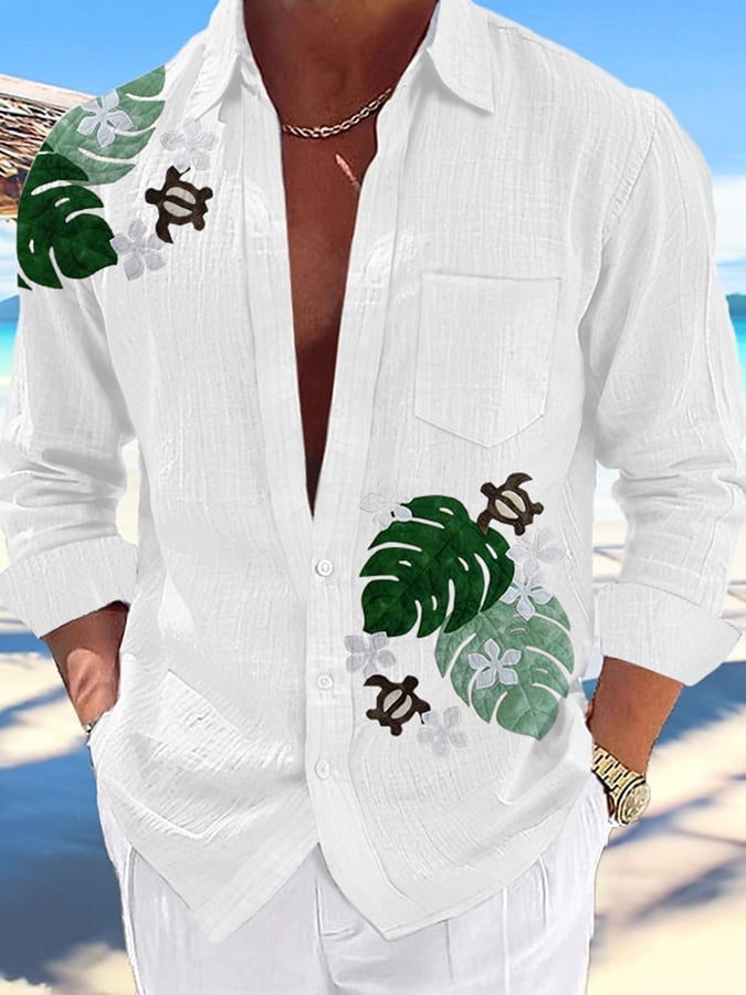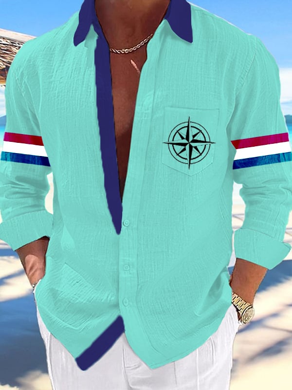 Men's Casual Resort Beach Long Sleeve Pocket Shirt