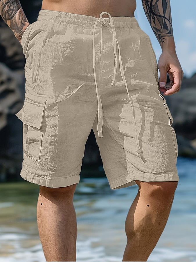 Men's Resort Solid Color Casual Pocket Cotton Shorts