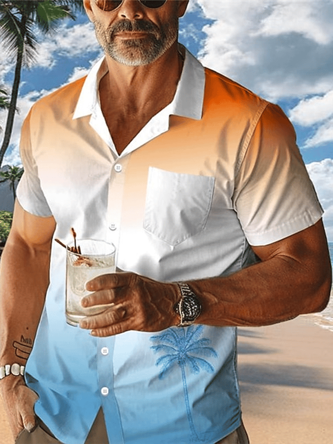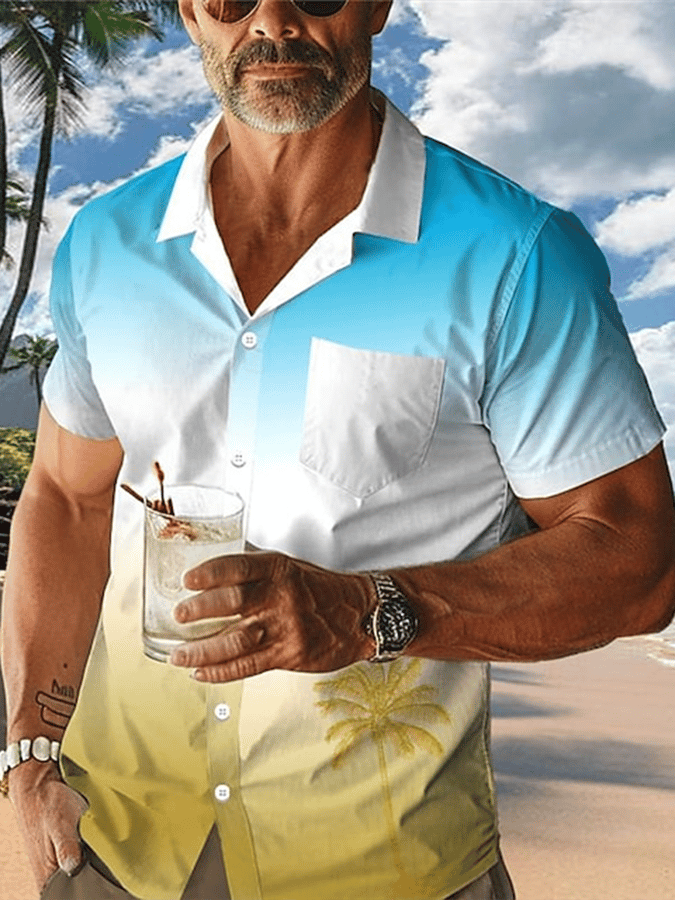 Men's Palm Tree Gradient Resort Hawaiian Print Casual Short Sleeve Shirt