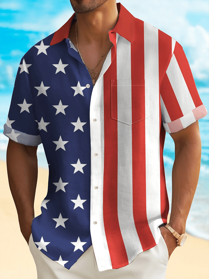 Men's Independence Day Printed Casual Shirt (With Pockets)