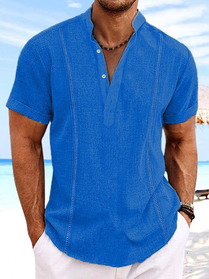 Men's Casual Hawaiian Print Stand Collar Shirt