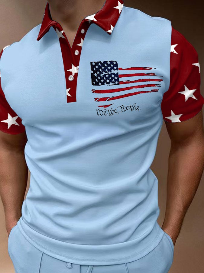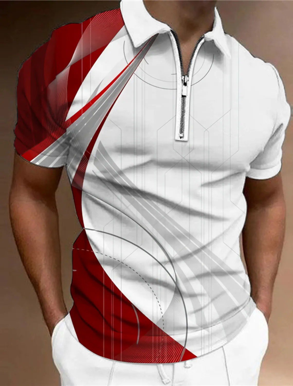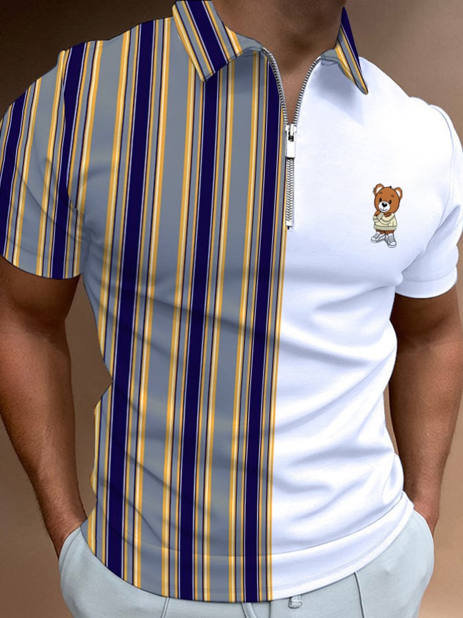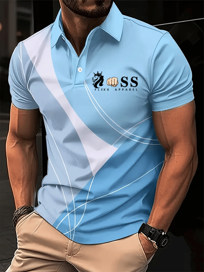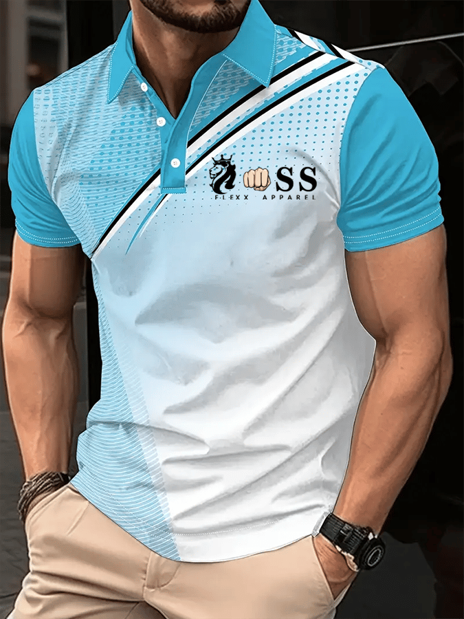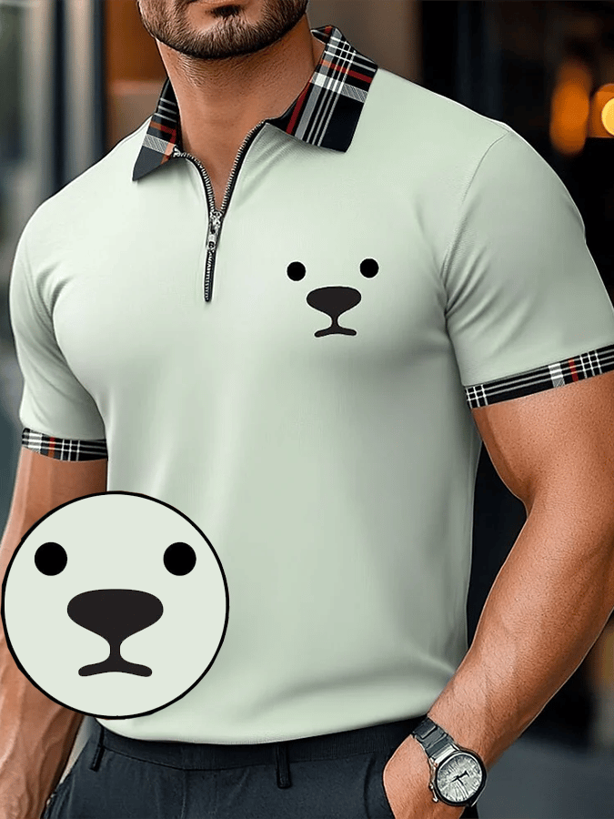 Men's Business Print Short Sleeve Button-Down Polo Shirt