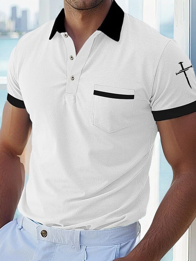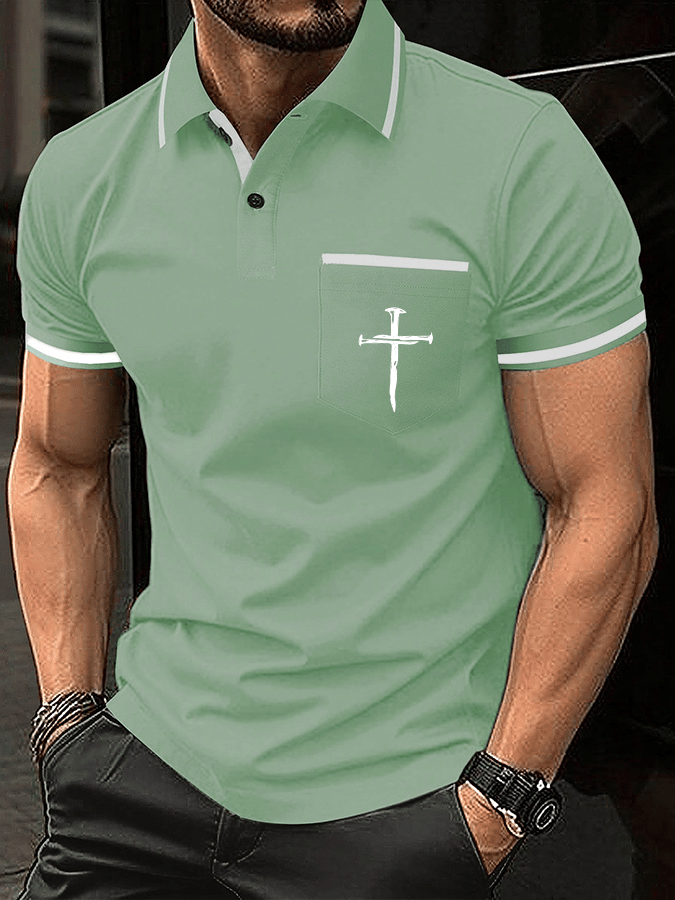 Men's Faith Cross Printed Casual Polo Shirt (With Pockets)