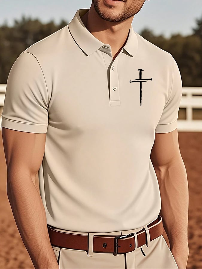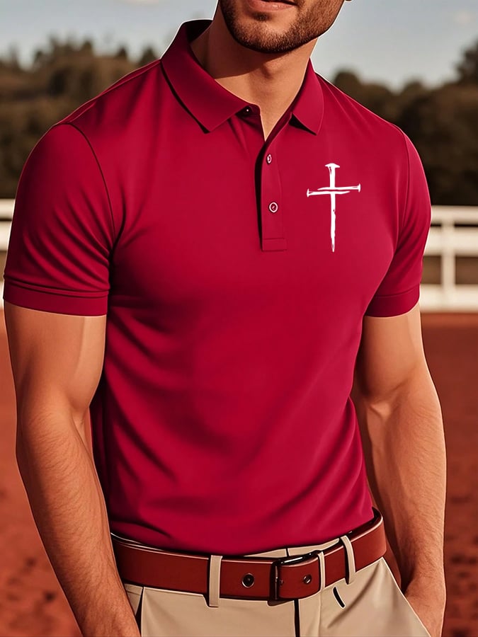Men's Retro Faith Cross Casual Printed Polo Shirt