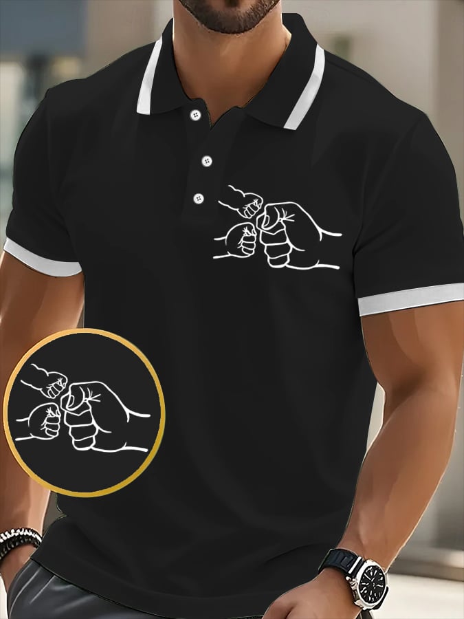 Men's Father's Day “Baby Toddler Kid Dad Fist Bump” Casual Printed Polo Shirt