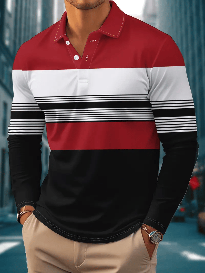 Men's Business Casual Striped Long-Sleeved Polo Shirt