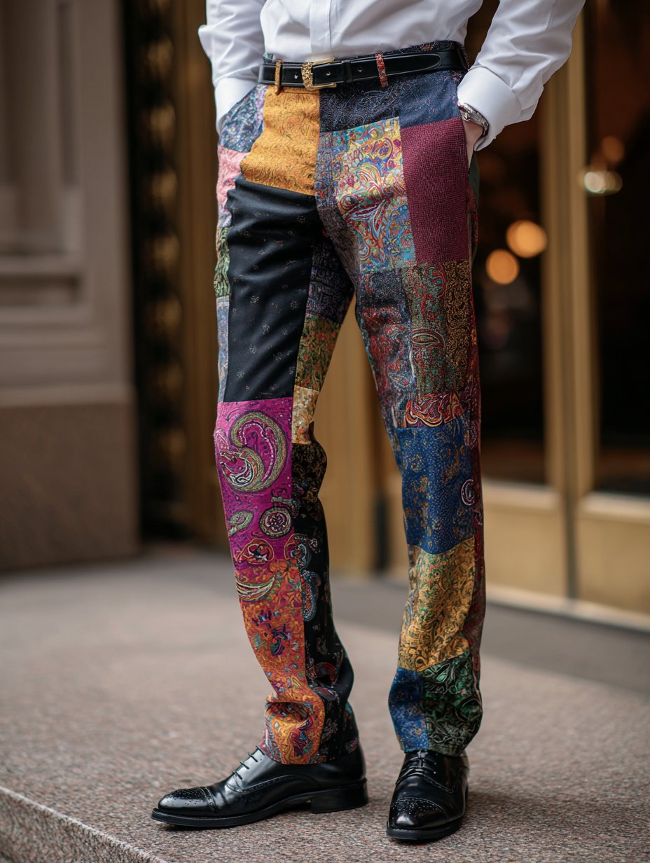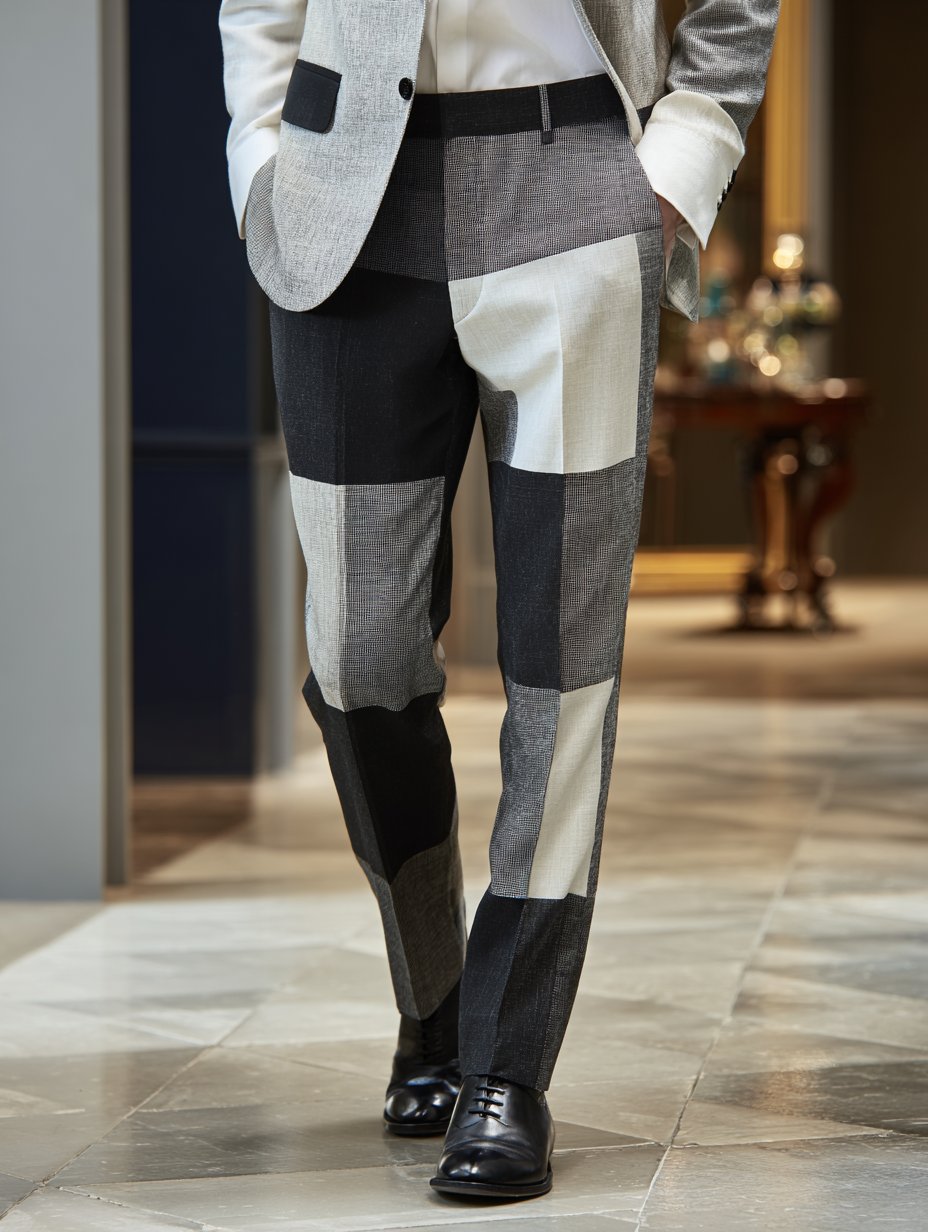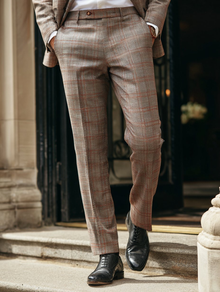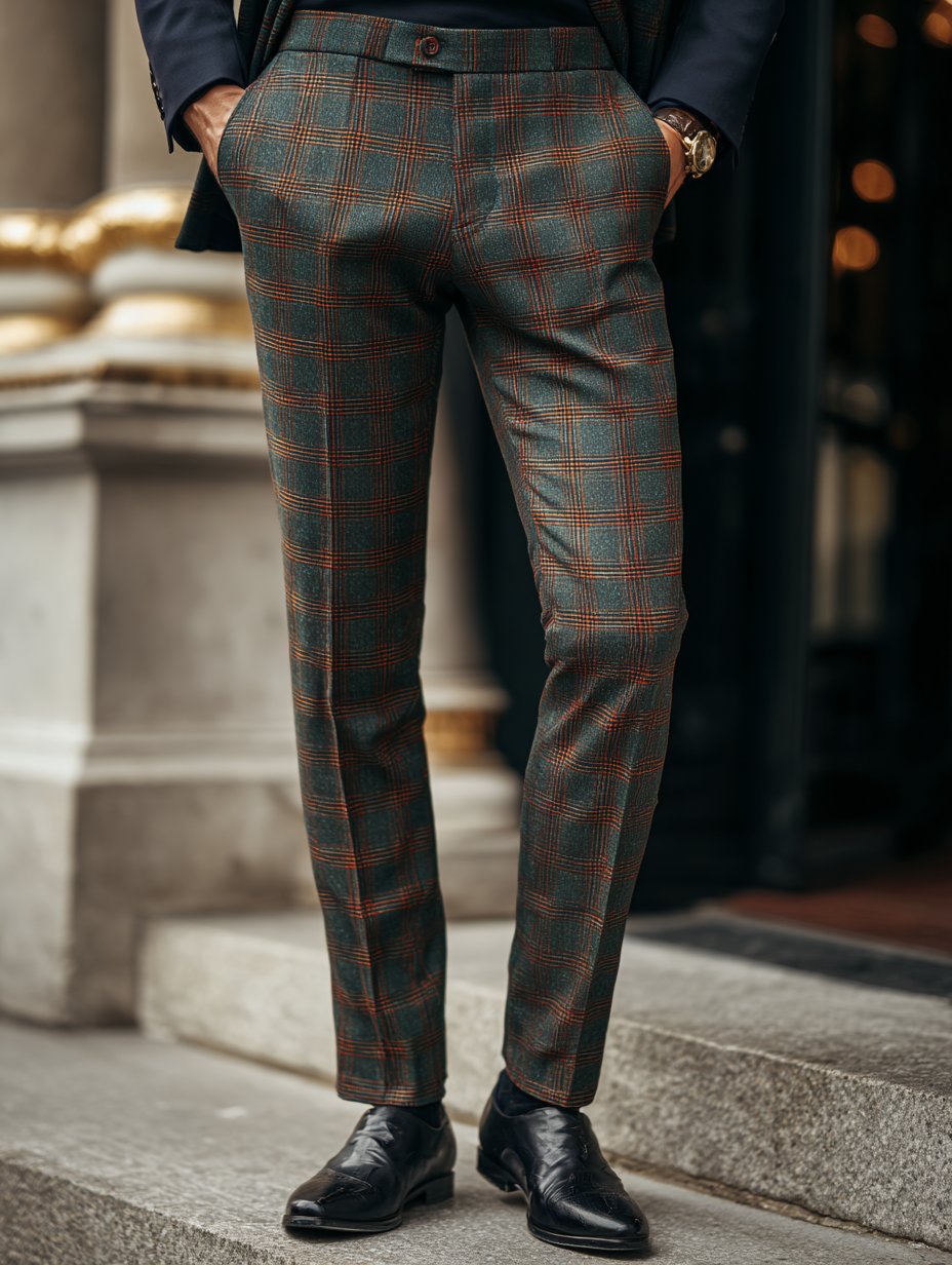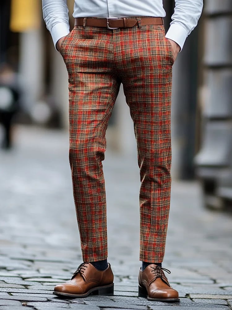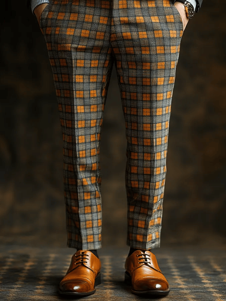 Casual Color Contrast Plaid Mid-Waist Men'S Trousers