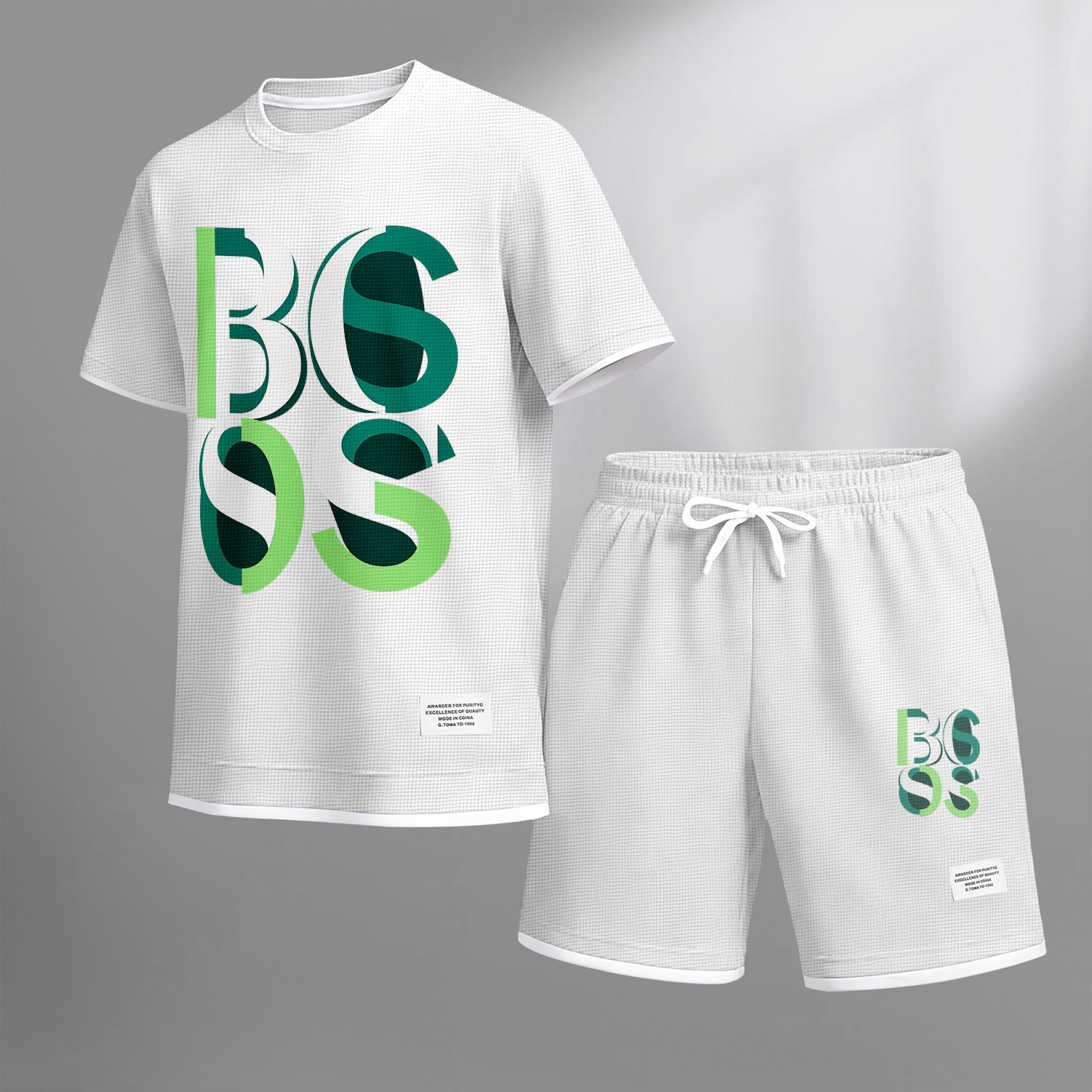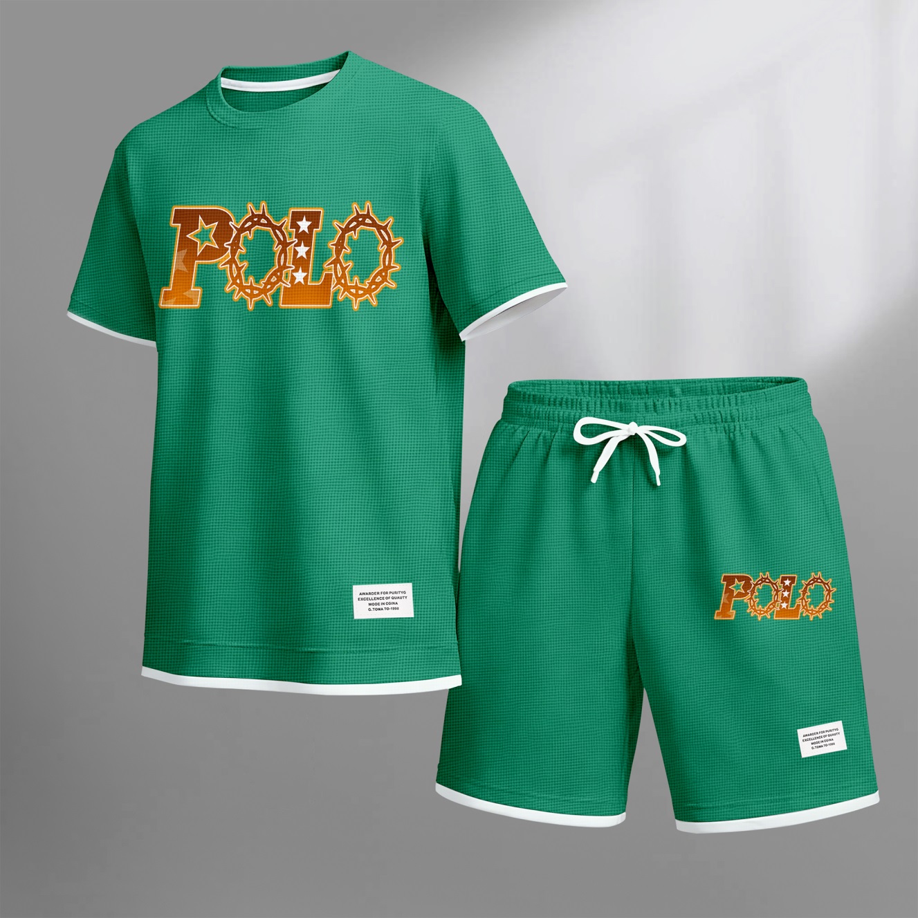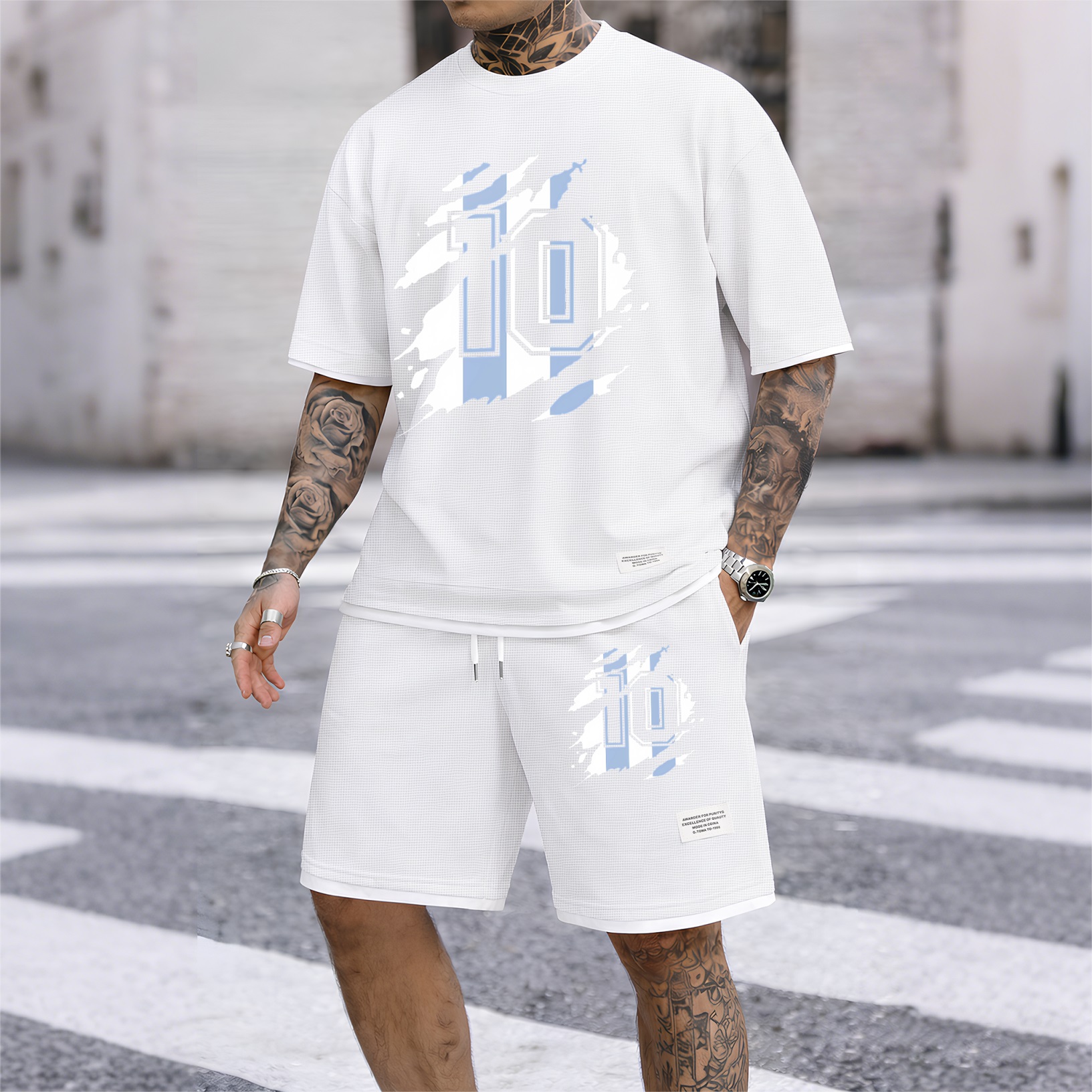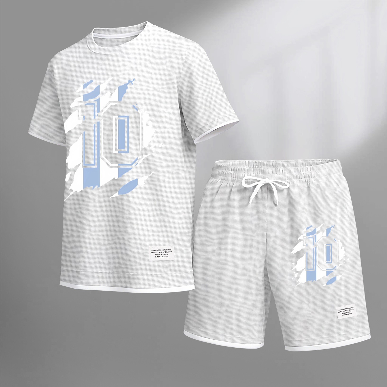 Men's classic number 10 printed drawstring shorts set, suitable for spring and summer wear. This casual summer set includes a short-sleeved shirt and shorts, perfect for everyday wear and sports.
