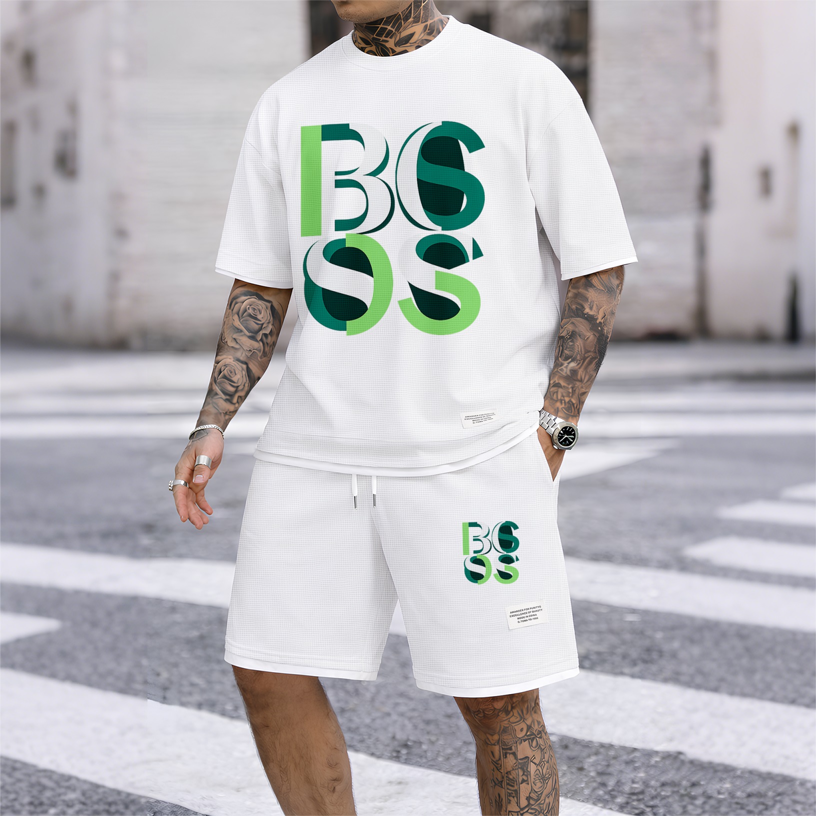 Men's Luxury Waffle-Knit Short-Sleeve Shirt & Shorts Set 17