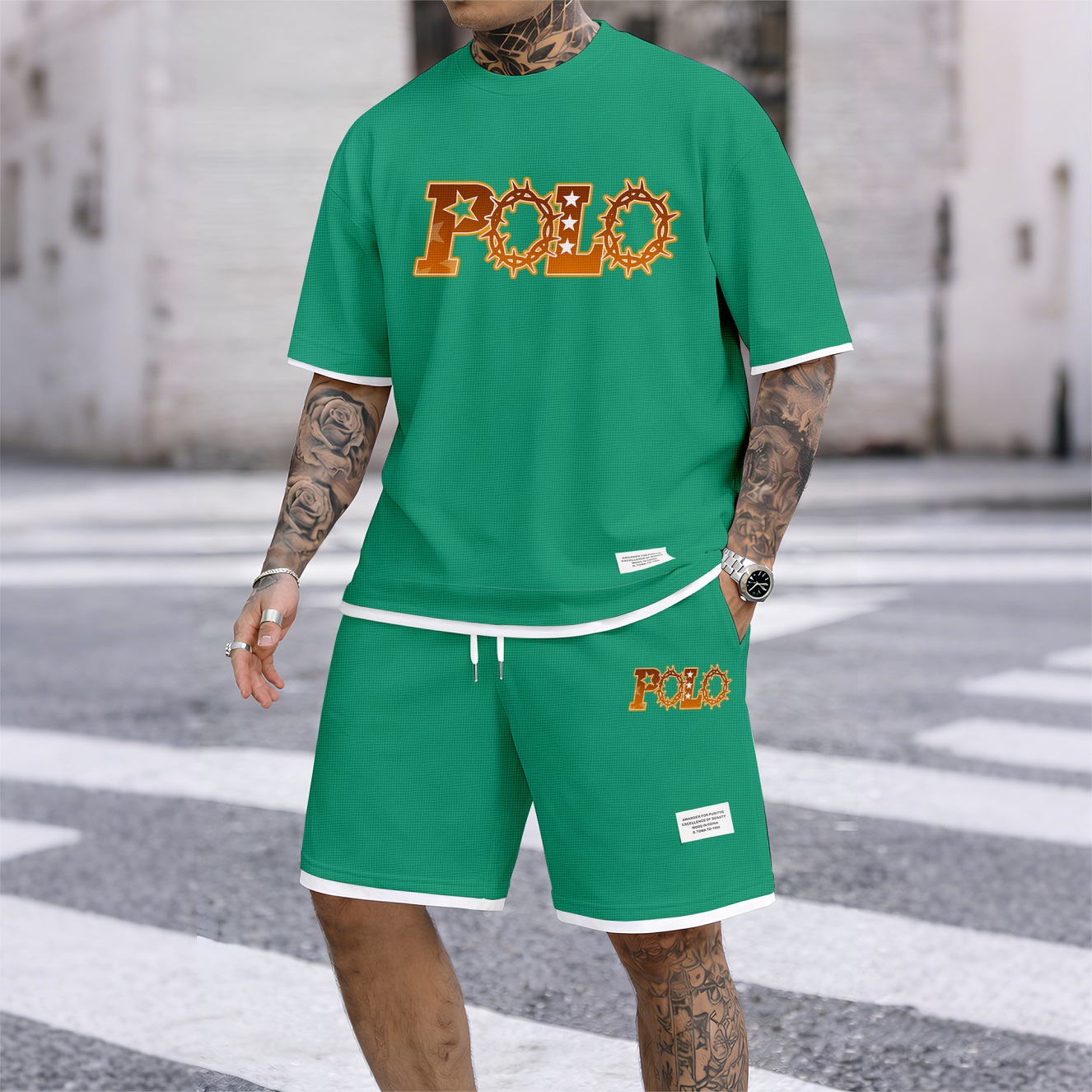 Men's Luxury Waffle-Knit Short-Sleeve Shirt & Shorts Set 10