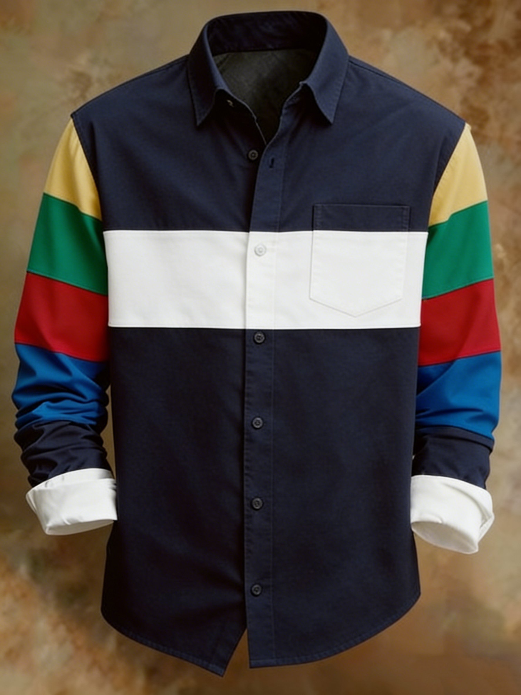 Men's Retro Business Color Block Pattern Long-Sleeve Shirt