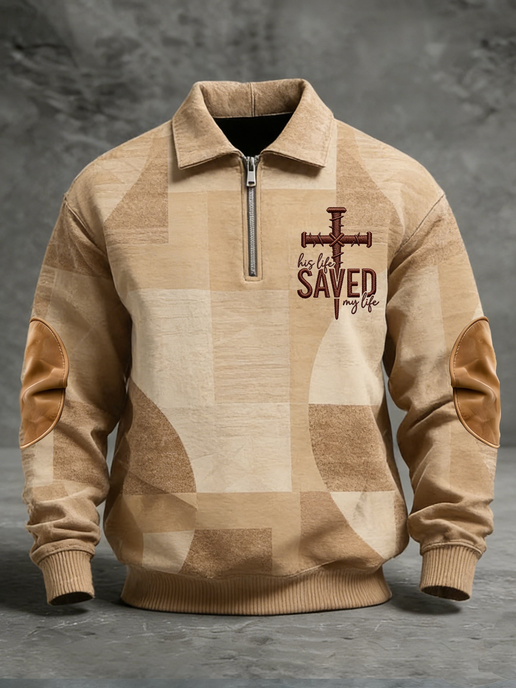 Men's Vintage Faith Print Zip-Up Sweatshirt-Fast Shipping