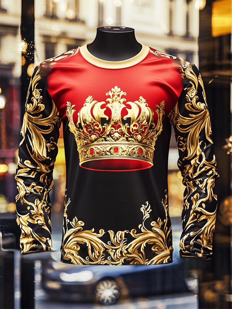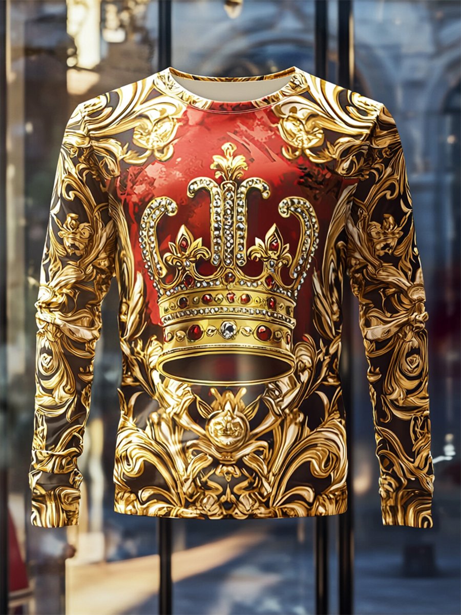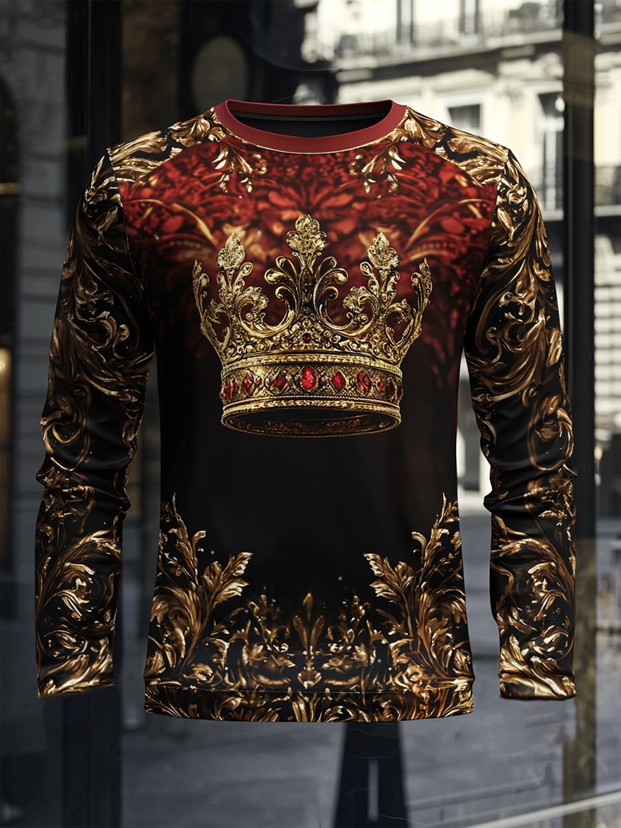 Men's Luxe Crown Print Long Sleeve T-Shirt