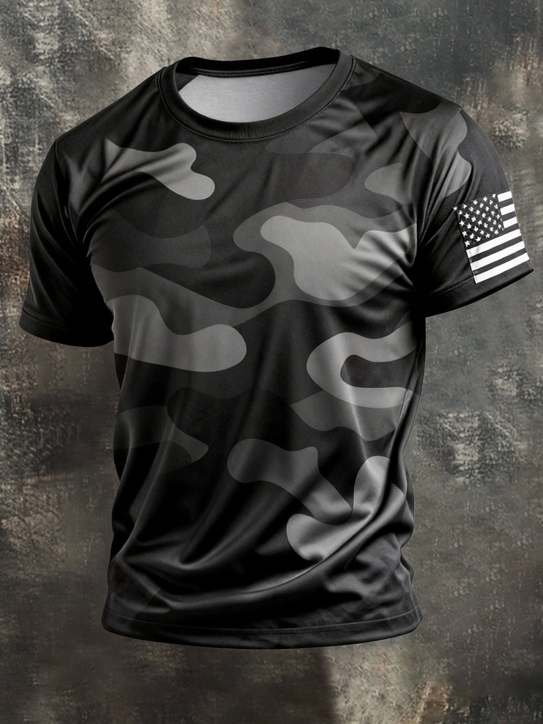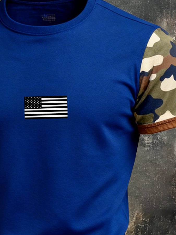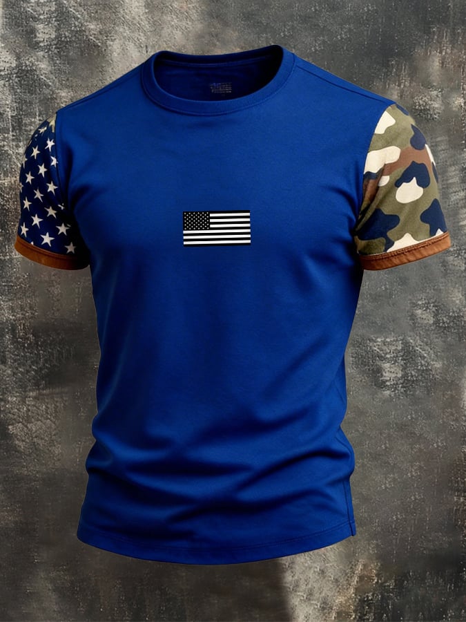 Men's Retro Patriot Camouflage Patchwork T-shirt