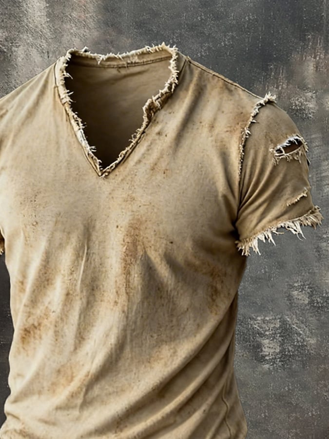 Men's Retro Pure Cotton Washed Casual V-Neck Short-Sleeve Top