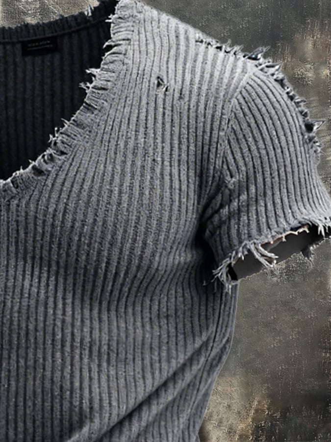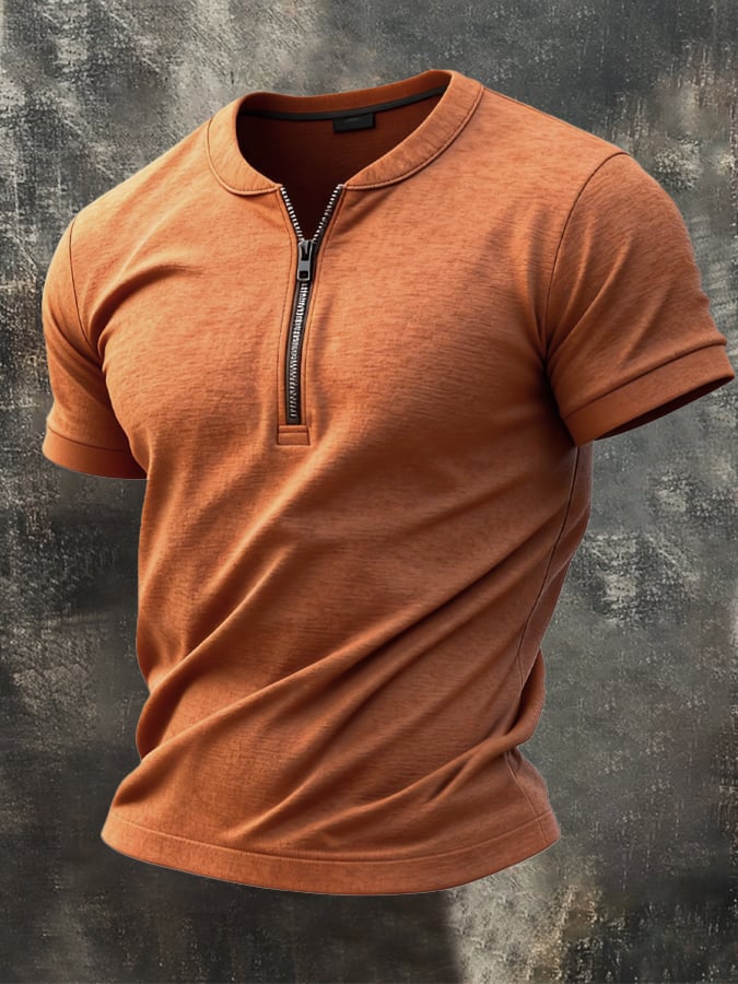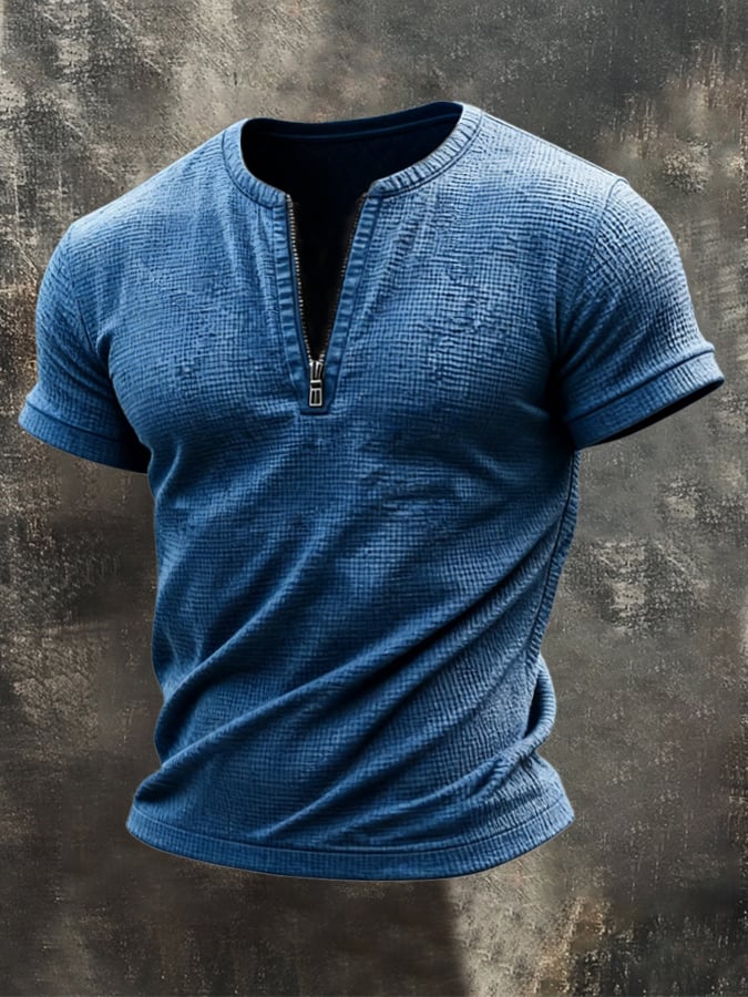 Men's Retro Casual Knitted Brushed Short Sleeve T-Shirt