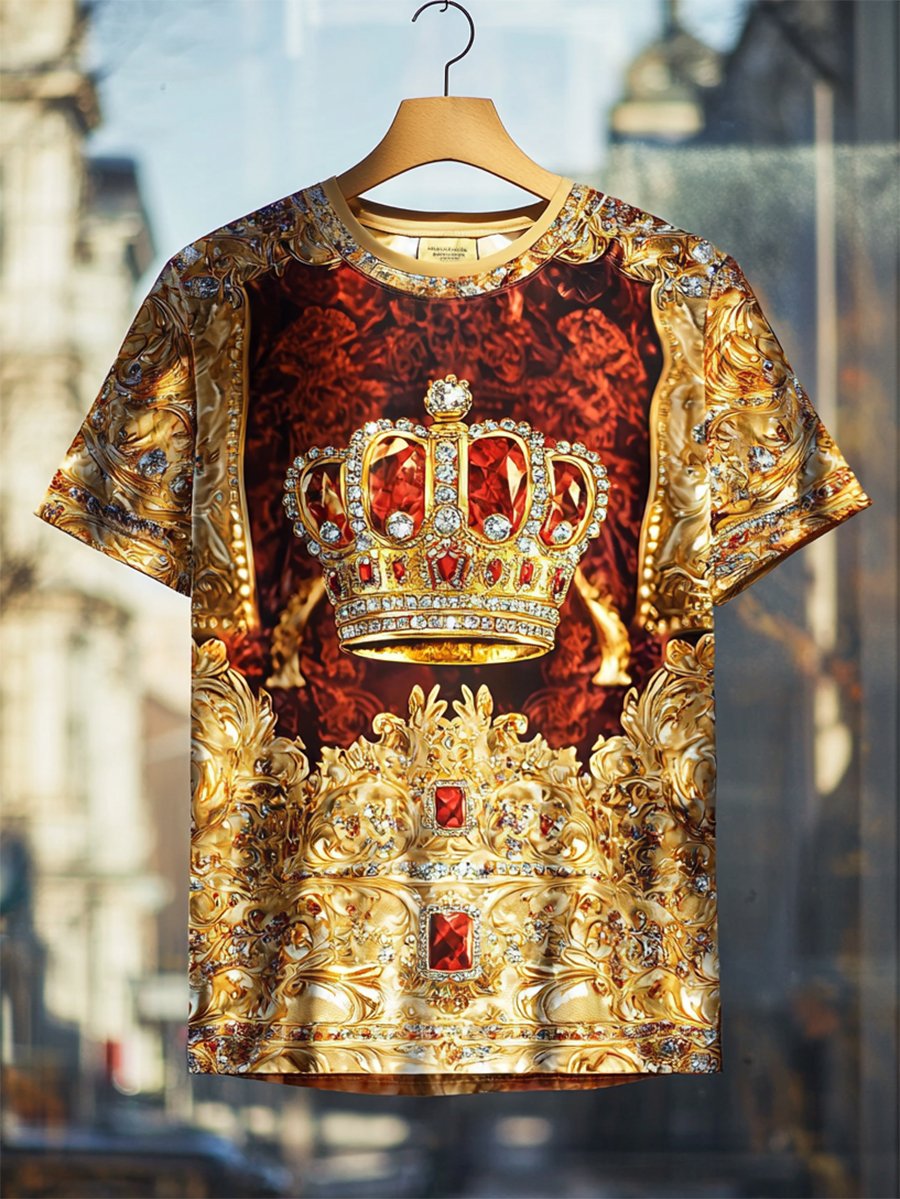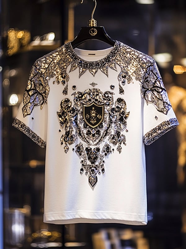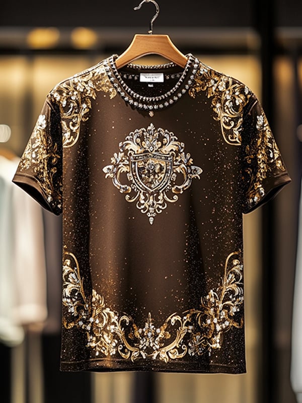 Men's Business European Pattern Sequin Print Short Sleeve T-shirt