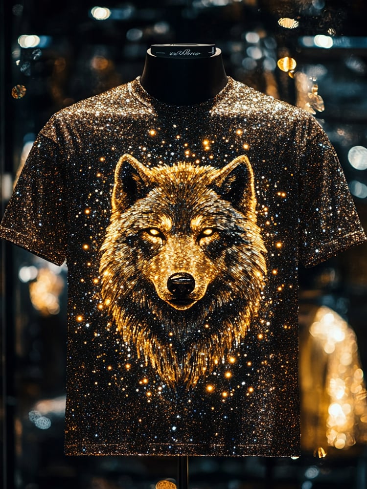 Men's Wolf Sequin Business Print Short Sleeve T-Shirt