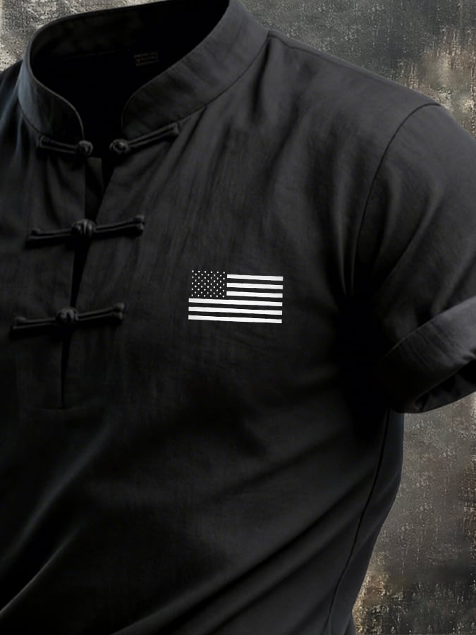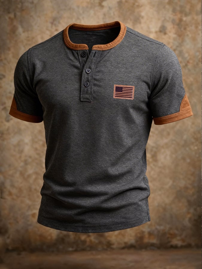 Men's Retro Patriot Flag Button Short-Sleeve T-Shirt