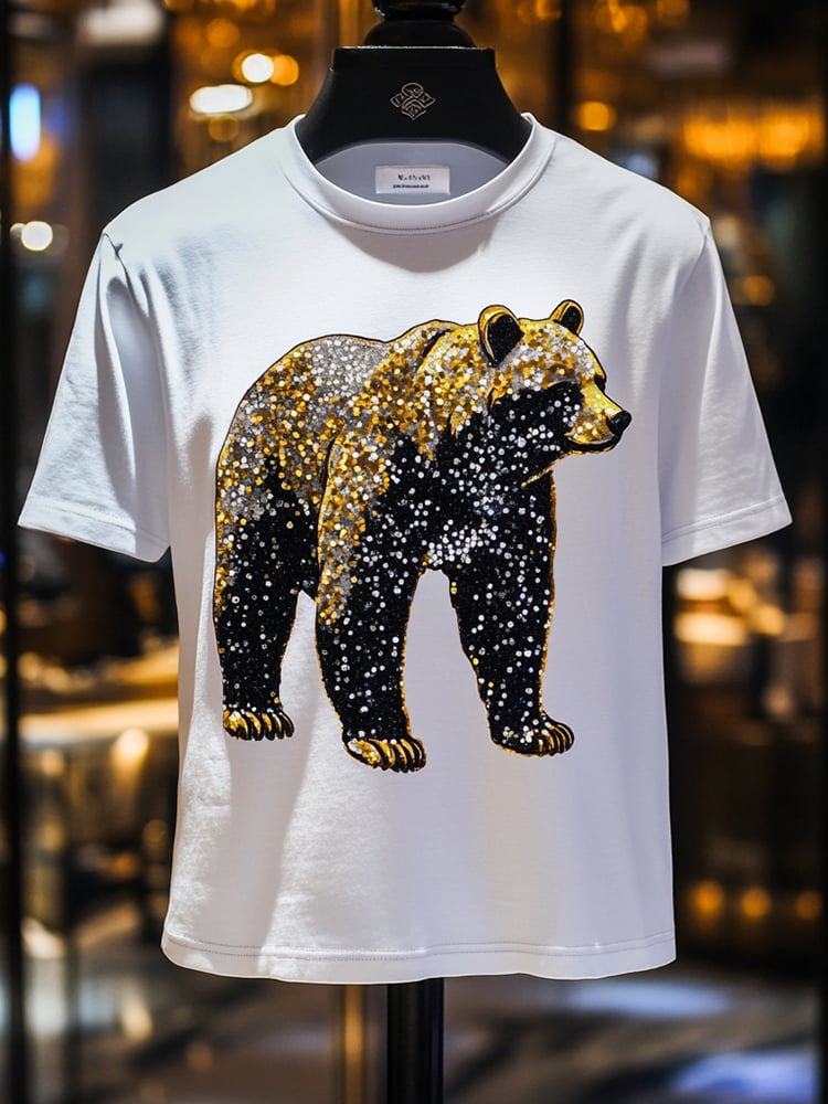 Men's Bear Sequin Business Print Short Sleeve T-Shirt