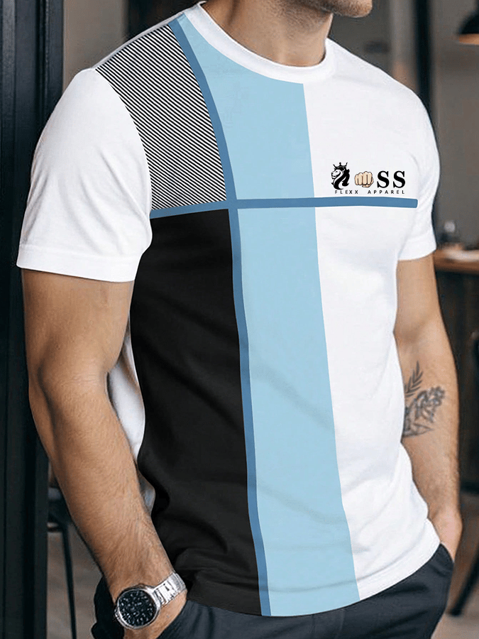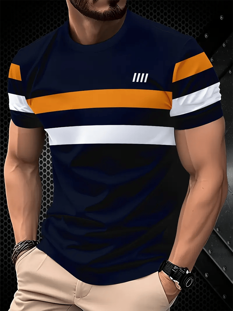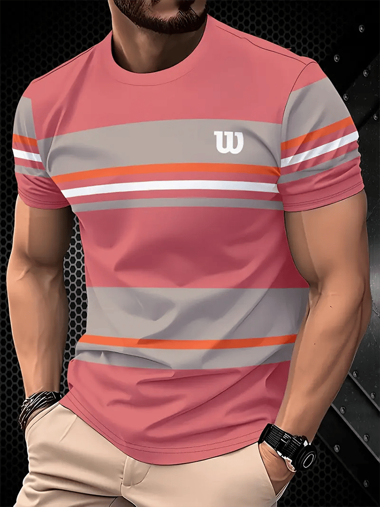 Men's Business Stripe Logo Print Short Sleeve T-Shirt