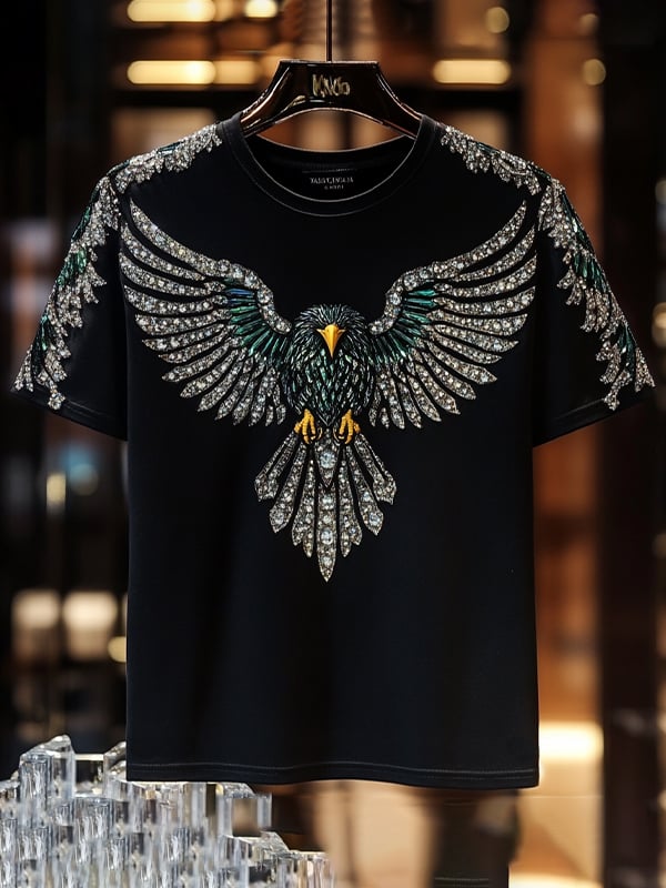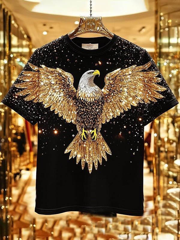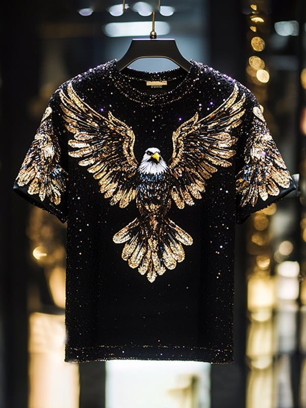 Men's Eagle Sequin Business Print Short Sleeve T-Shirt