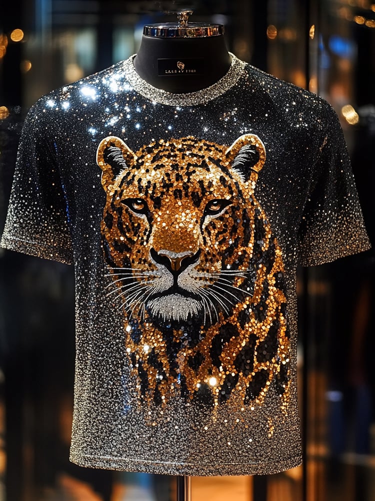 Men's Leopard Sequin Business Print Short Sleeve T-Shirt