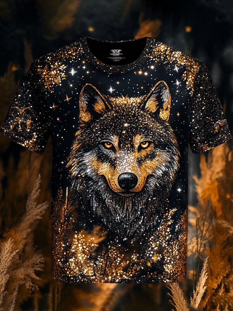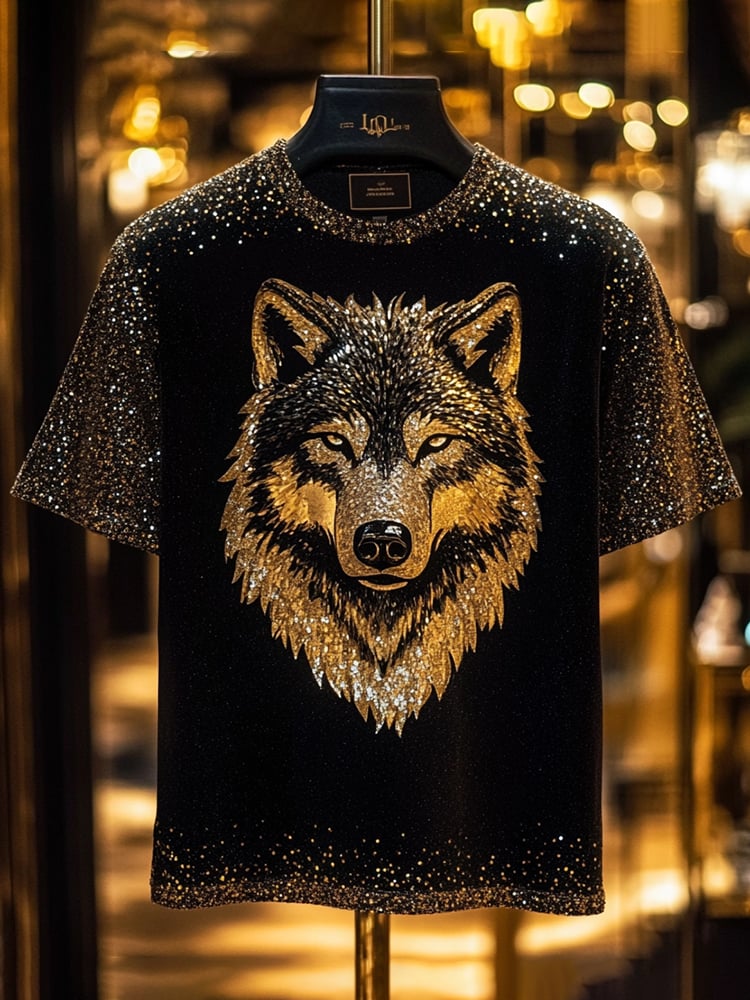 Men's Sequin Business Wolf Print Short Sleeve T-Shirt