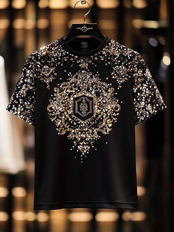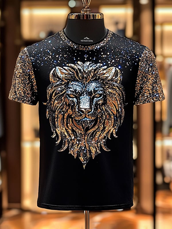 Men's Business Lion Sequin Print Short Sleeve T-Shirt