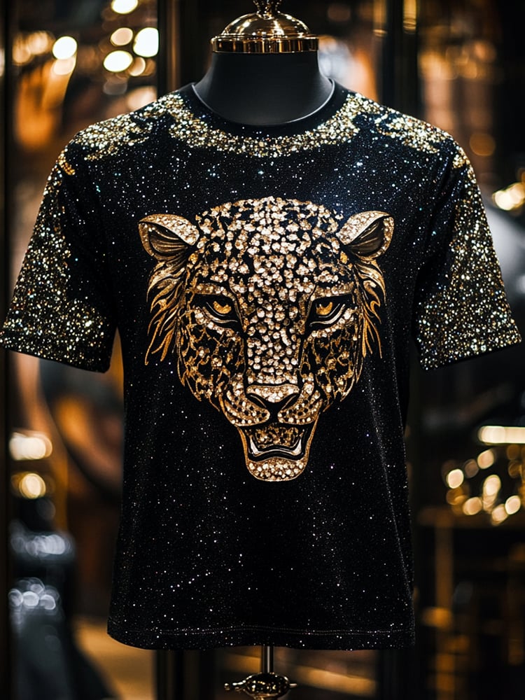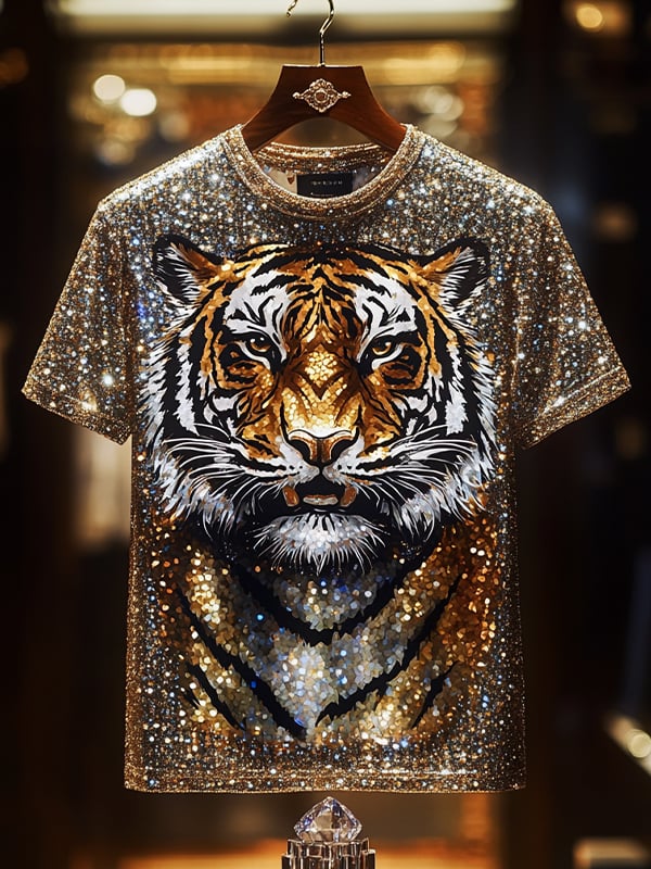 Men's Tiger Sequin Business Print Short Sleeve T-Shirt