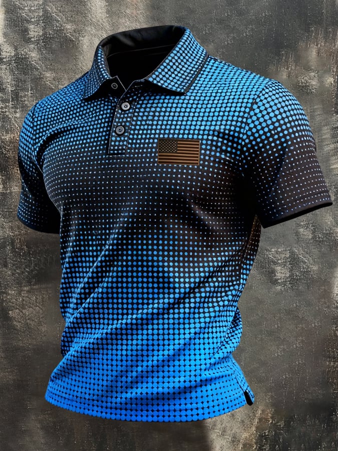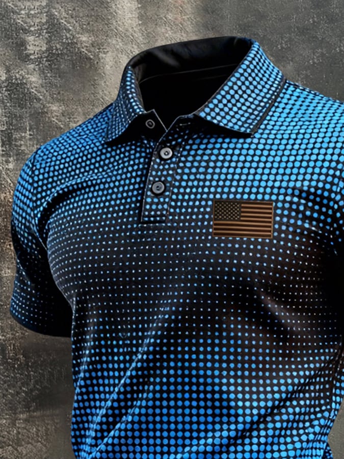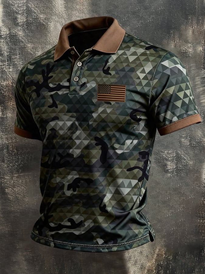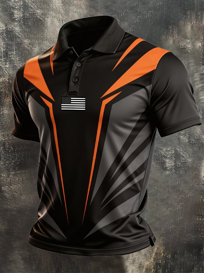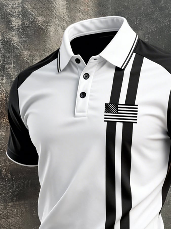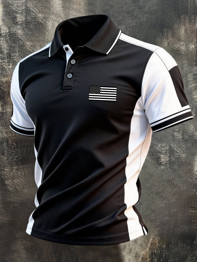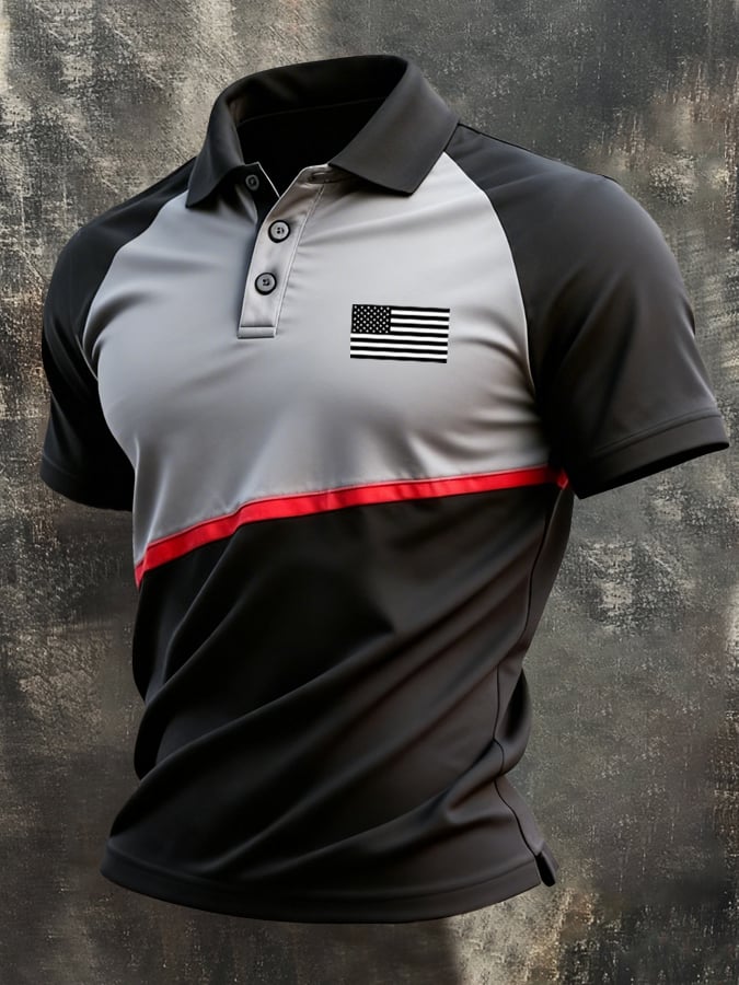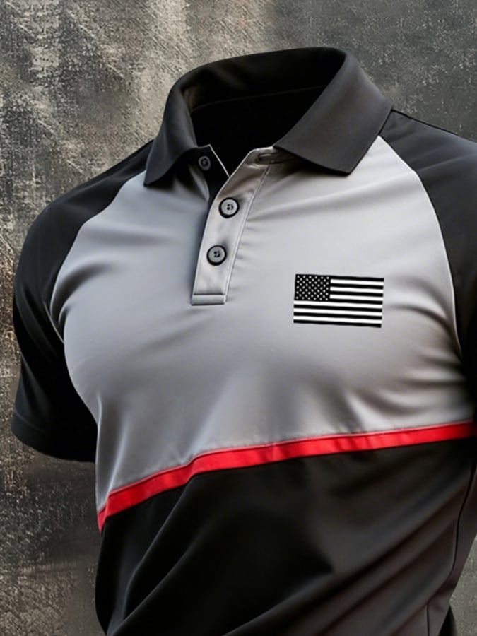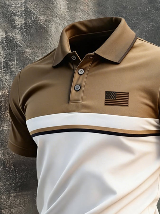Men's Retro Patriotic Color-Block Short-Sleeve Polo Shirt