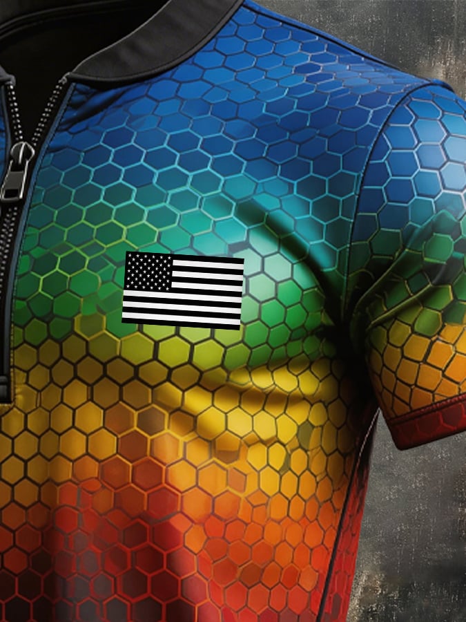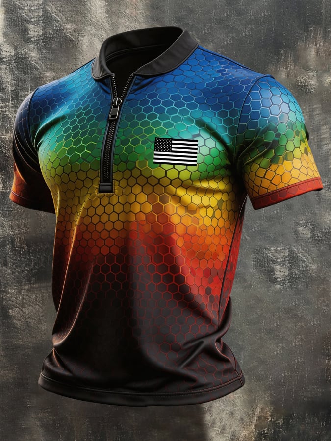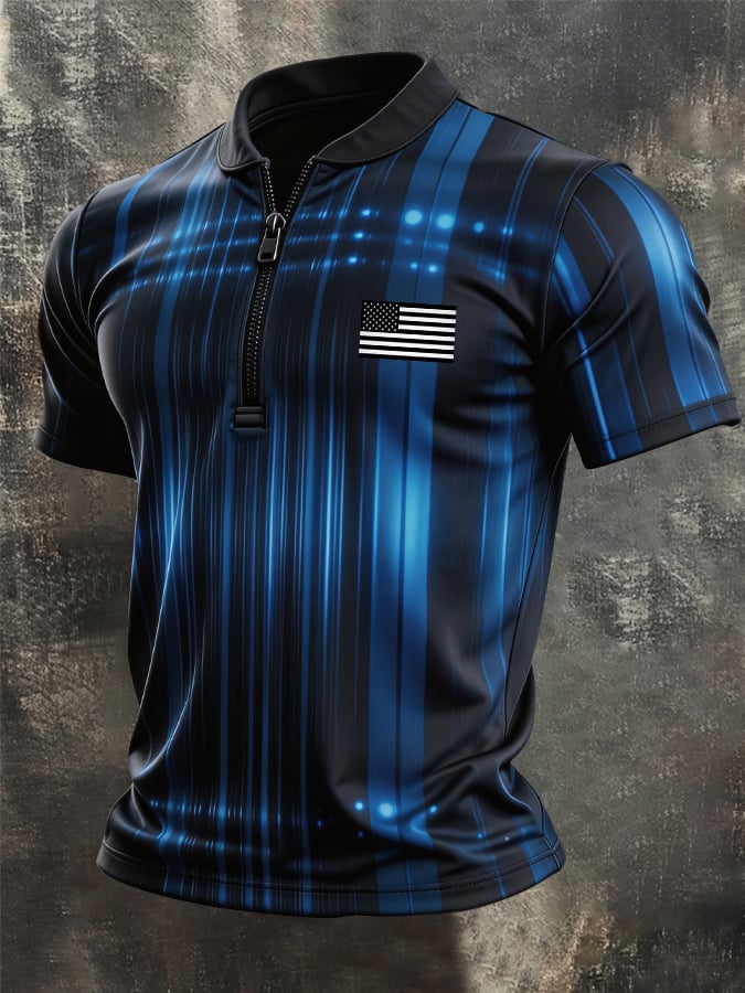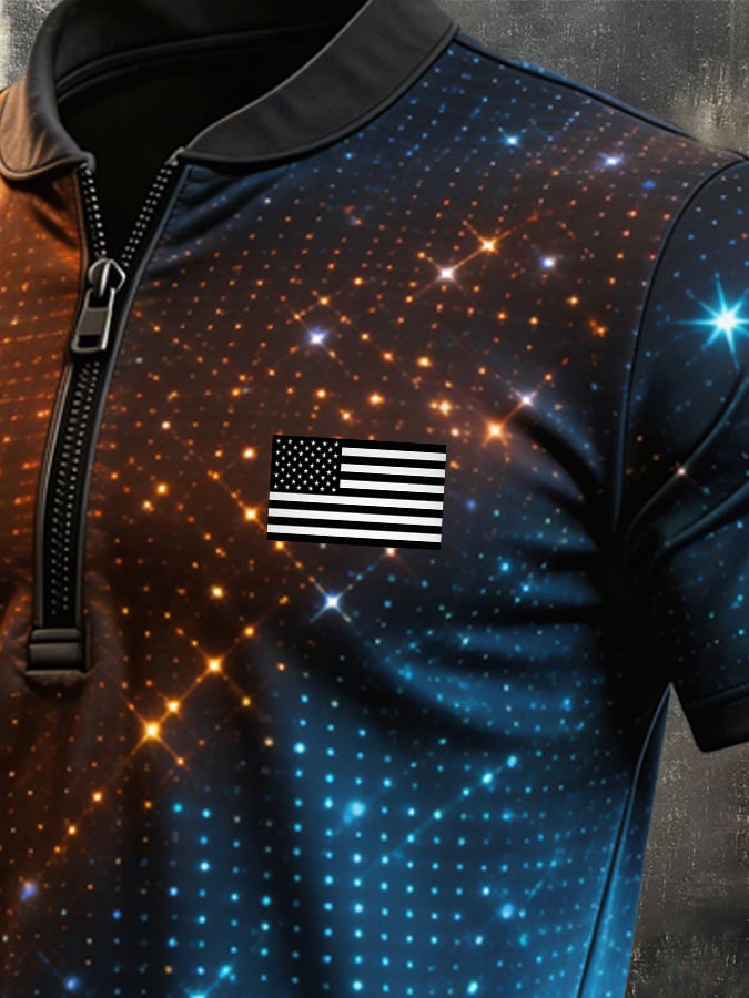 Men's Retro "Patriot" Color-Block Short-Sleeve Half-Zip Polo Shirt