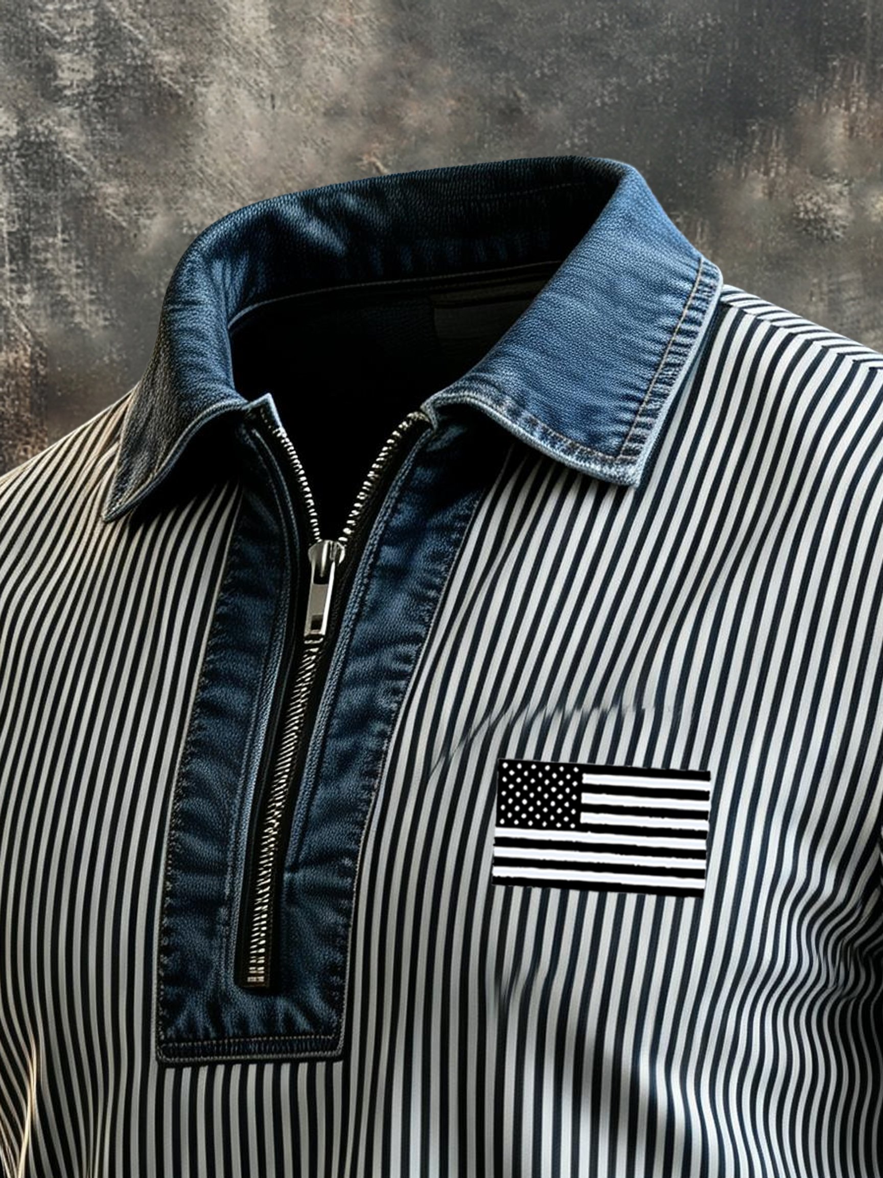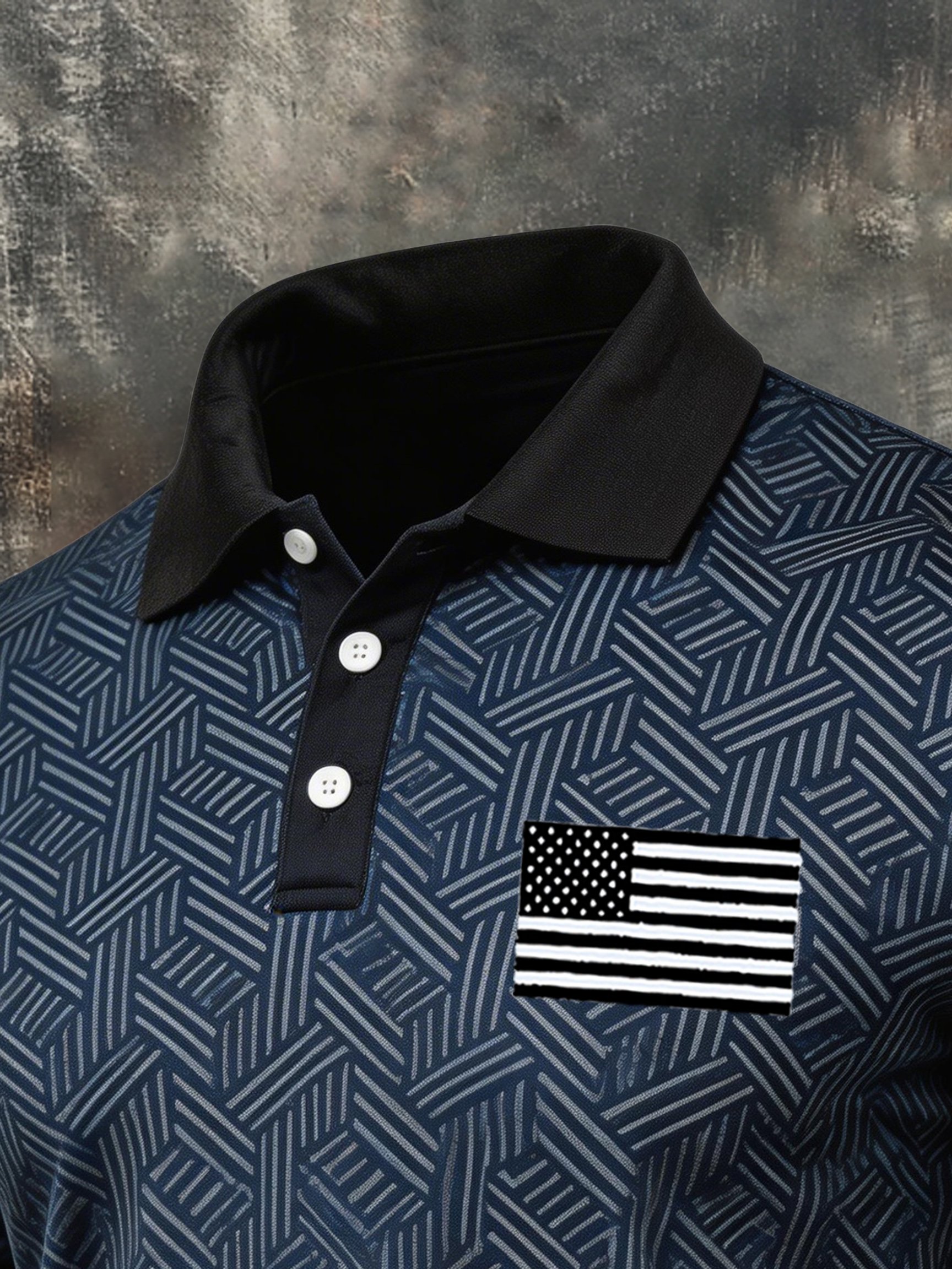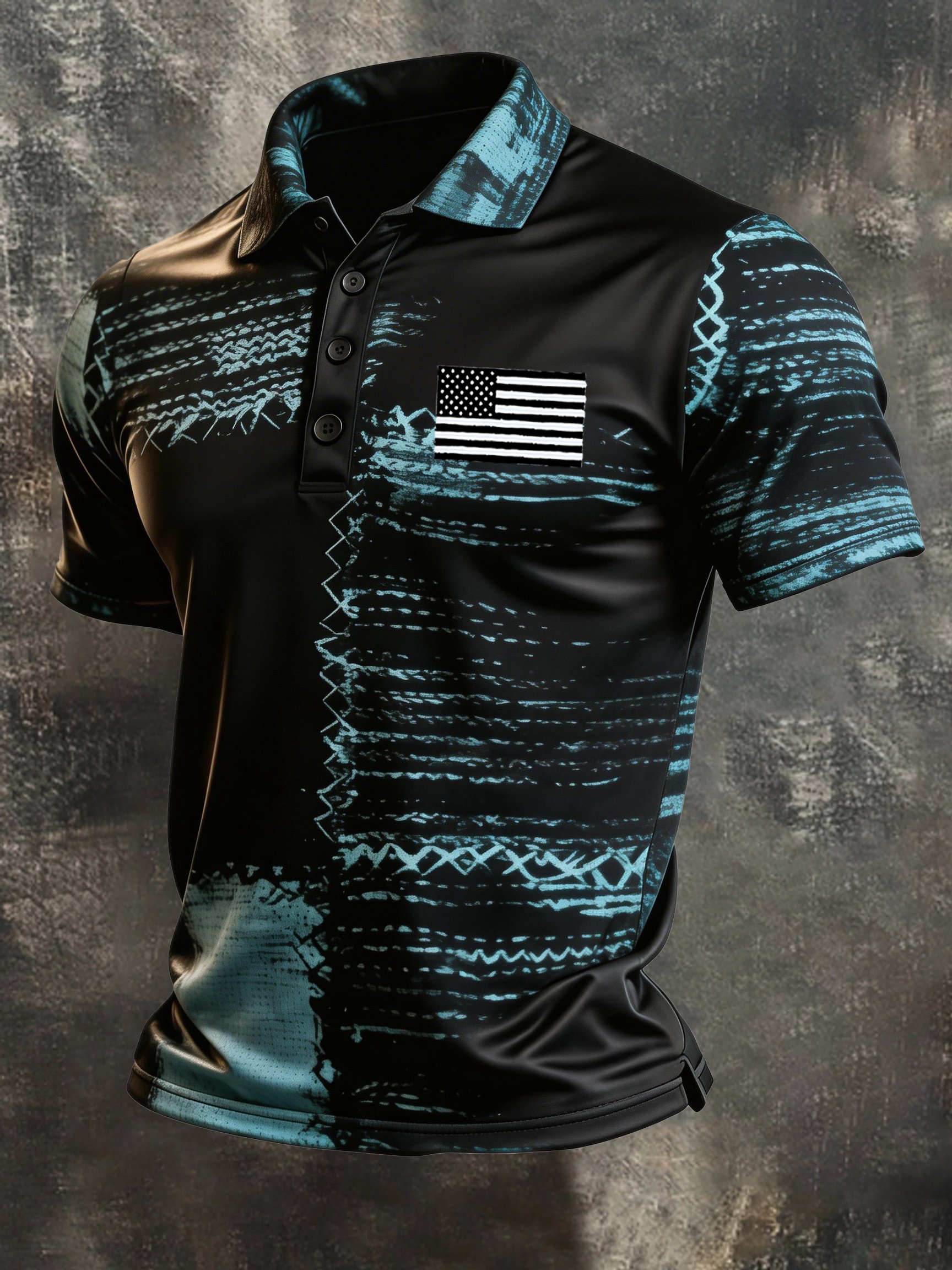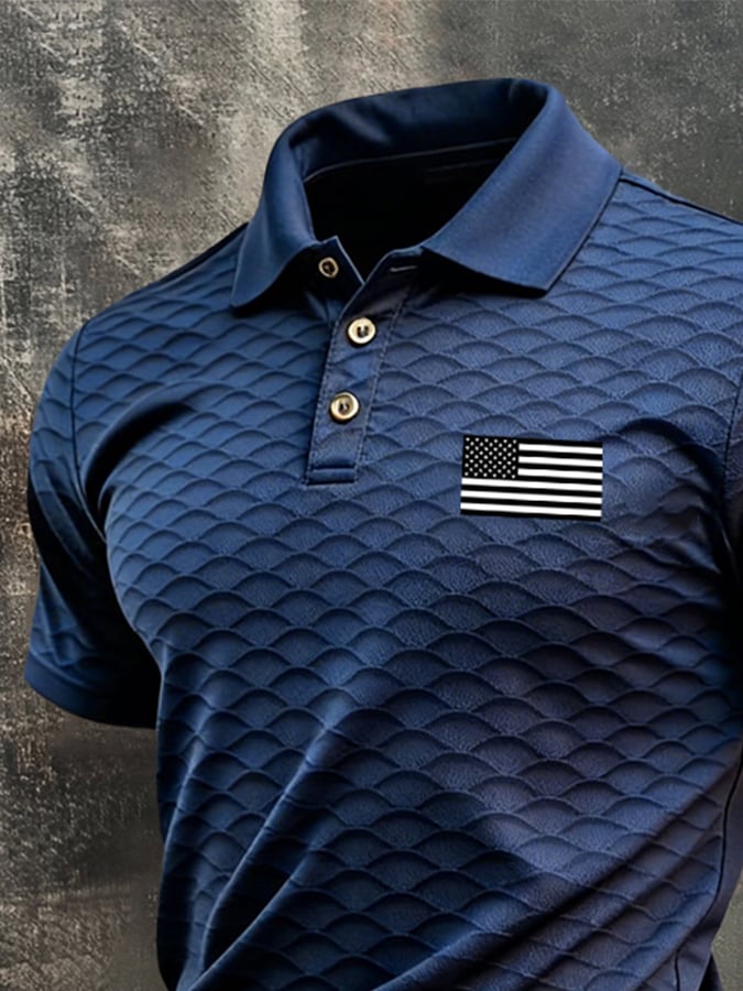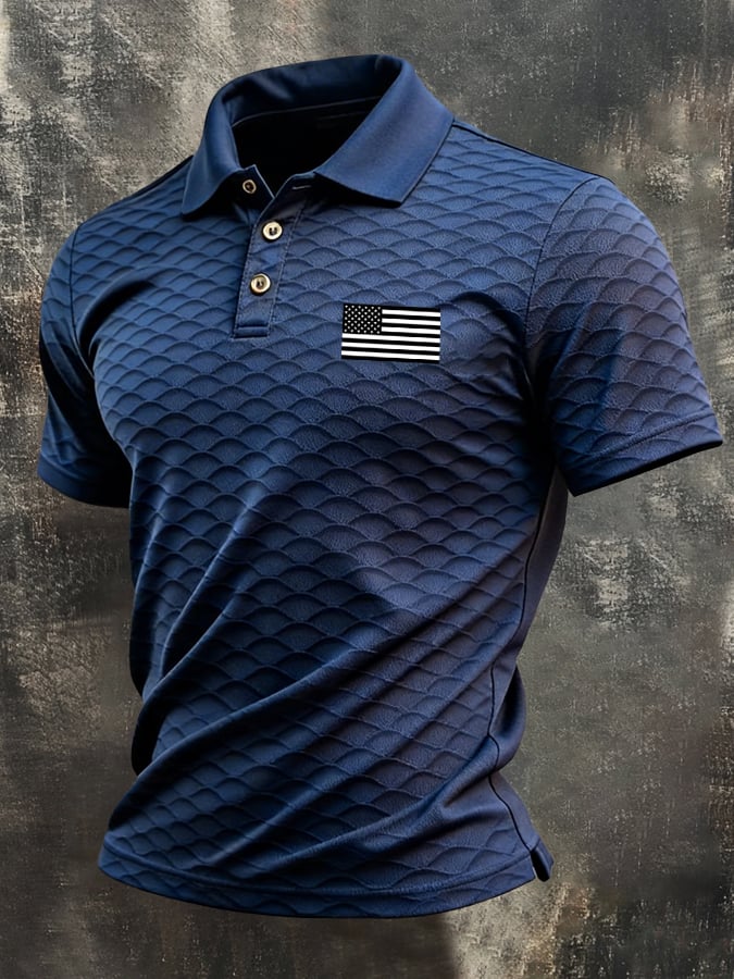 Men's Retro "Patriot" Textured Fabric Short-Sleeve T-Shirt with Contrast Polo Collar