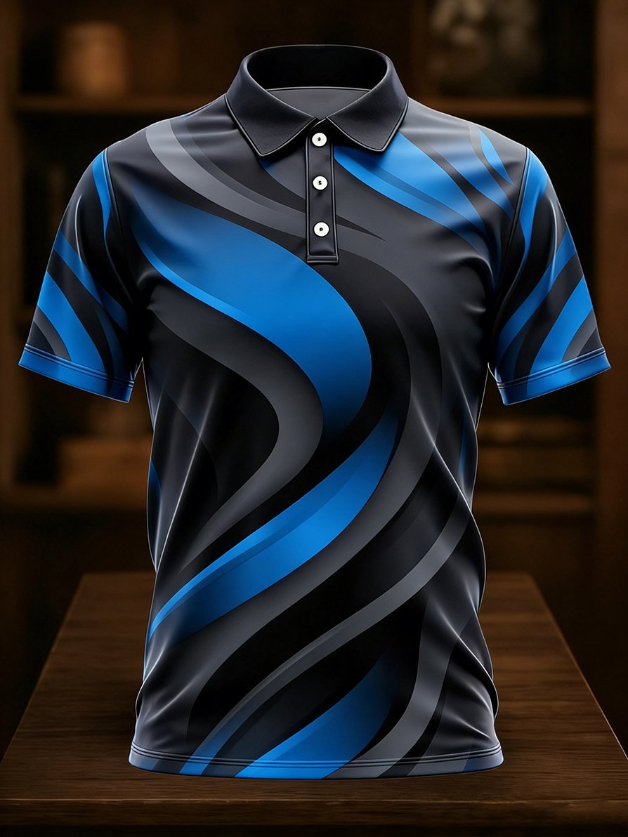 Men's Business Casual Art Button Short-Sleeve Polo Shirt