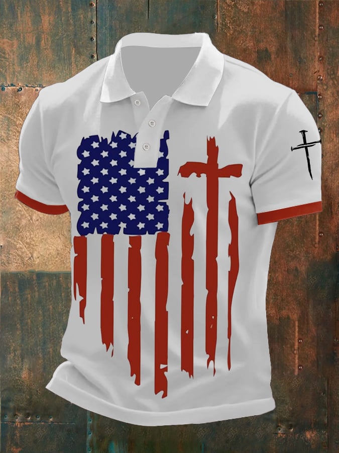 Men's Thank You Jesus Printed Casual Polo Shirt