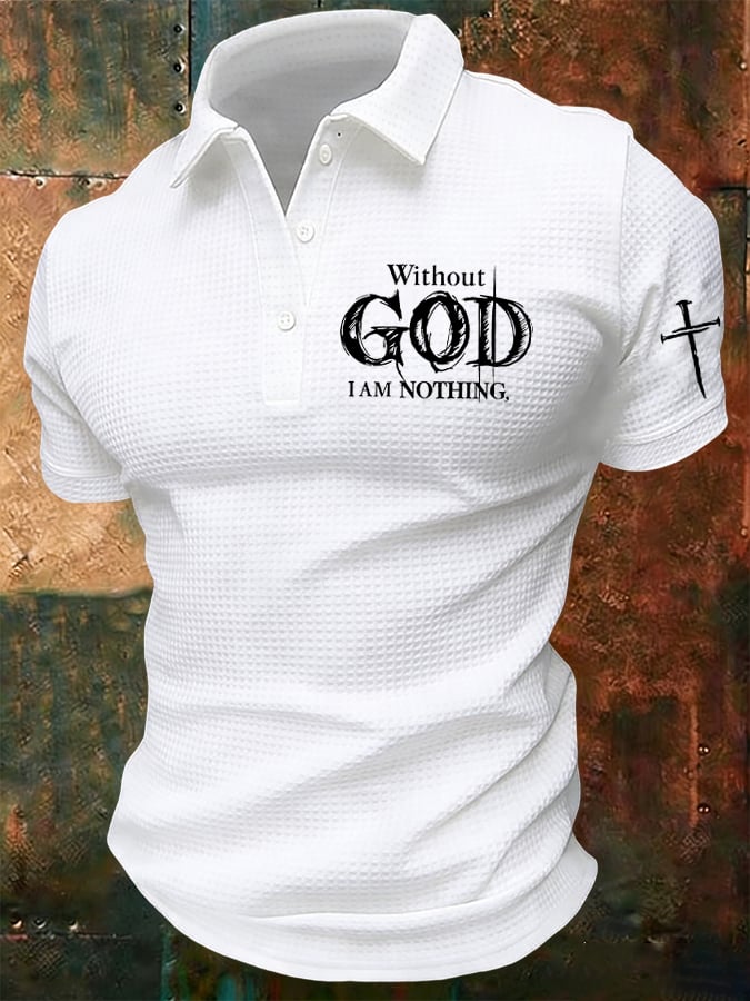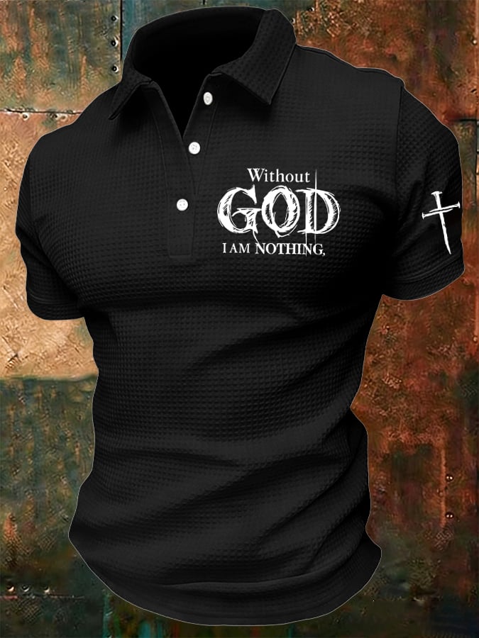 Men's Retro Faith “Without God I Am Nothings,” Print Short-Sleeve Waffle Polo Shirt