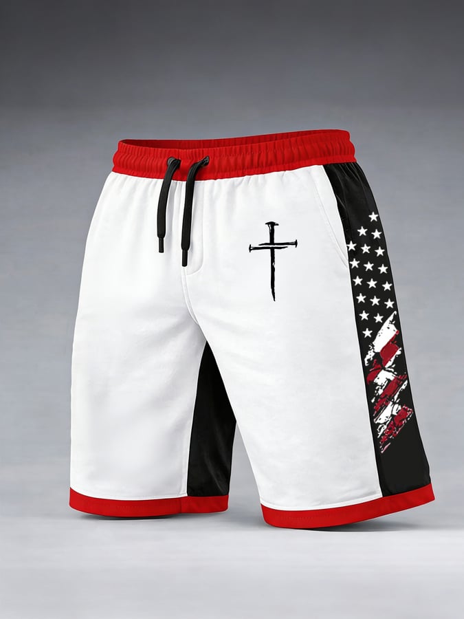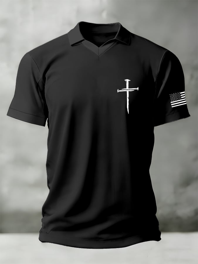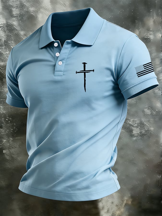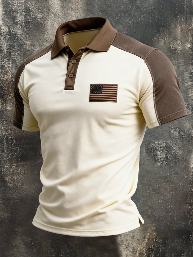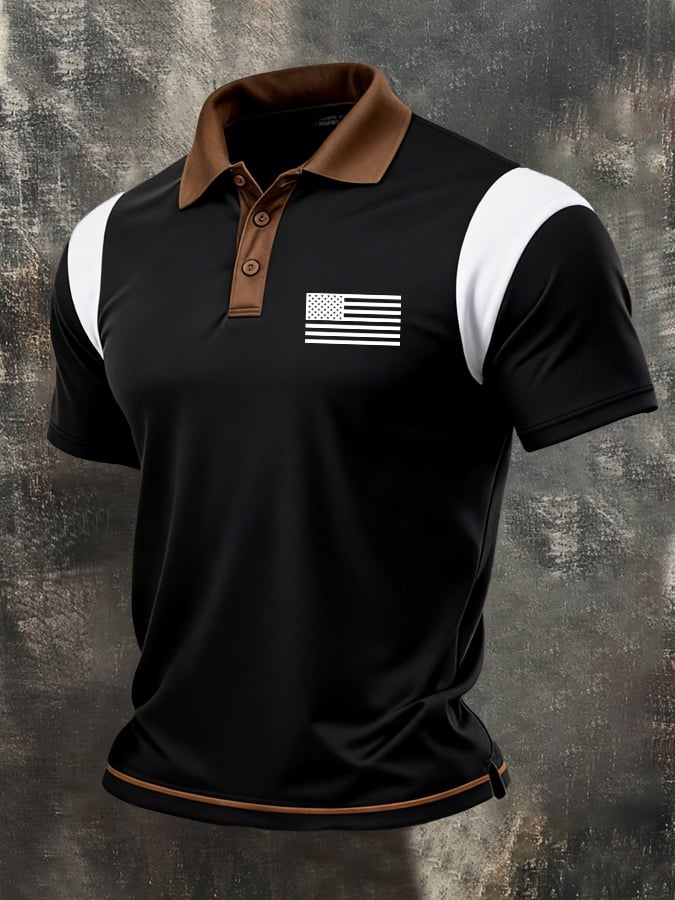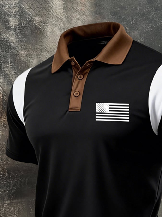 Men's Retro Patriot Color Block Polo Collar Short Sleeve
