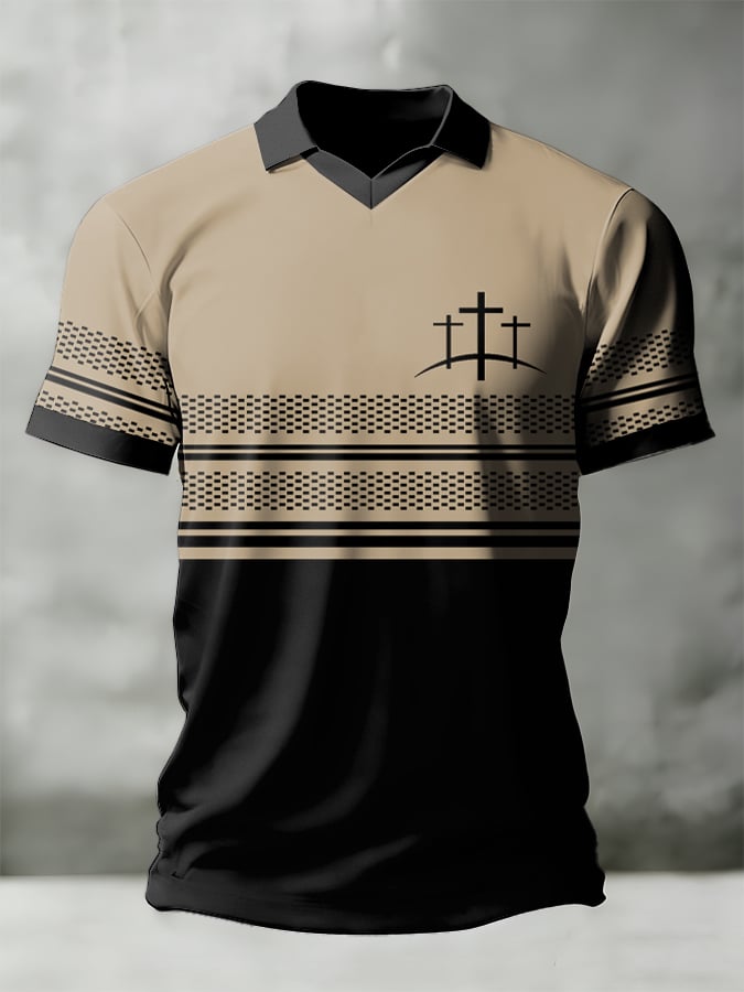 Vintage Geometric Decorative Patterns Casual Short Sleeve Polo Shirt