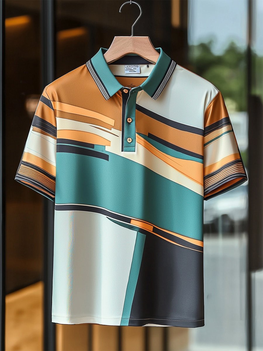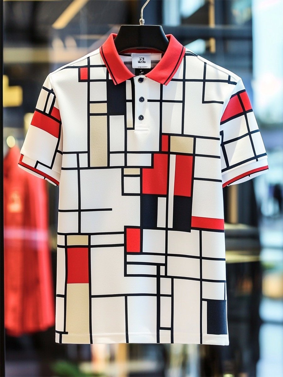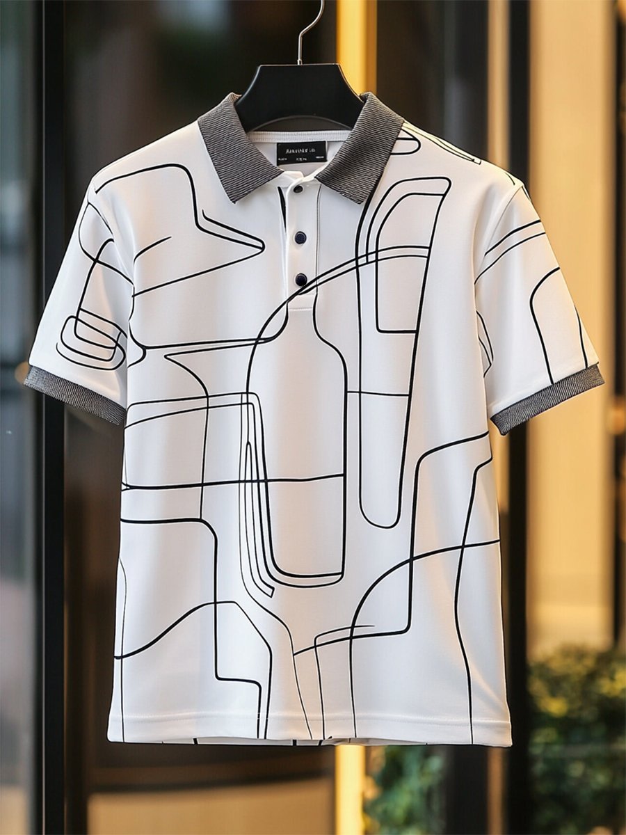 Men's Business Casual Bauhaus Style Button Short Sleeve Polo Shirt