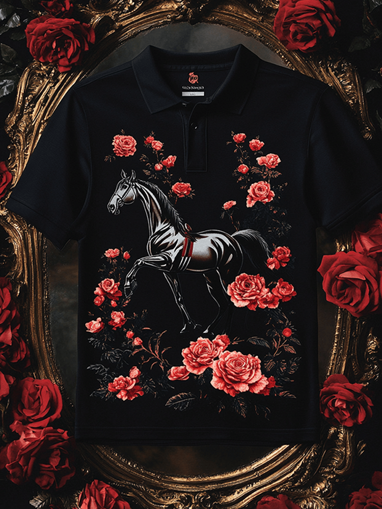 Men's Horse Racing Short Sleeve Polo T-Shirt