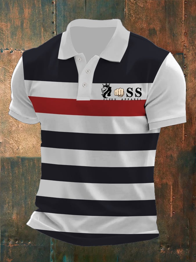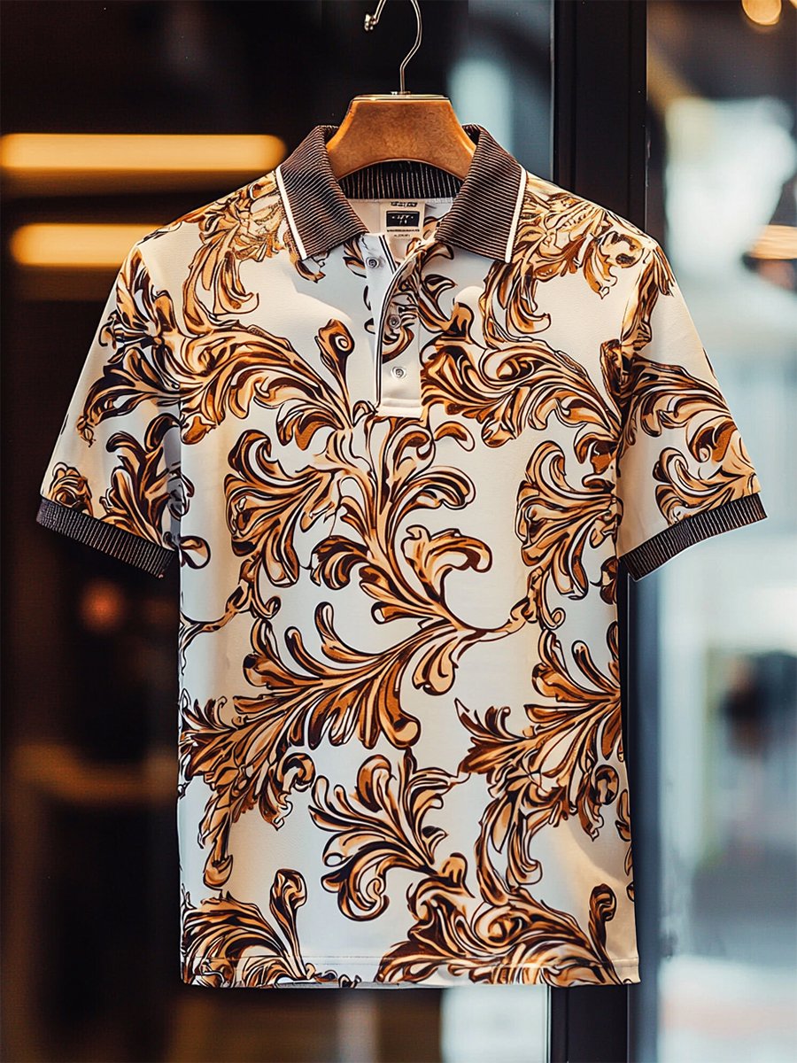 Men's Business Print Short Sleeve Button-Down Polo Shirt