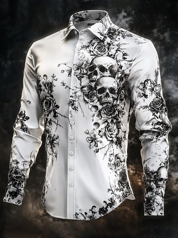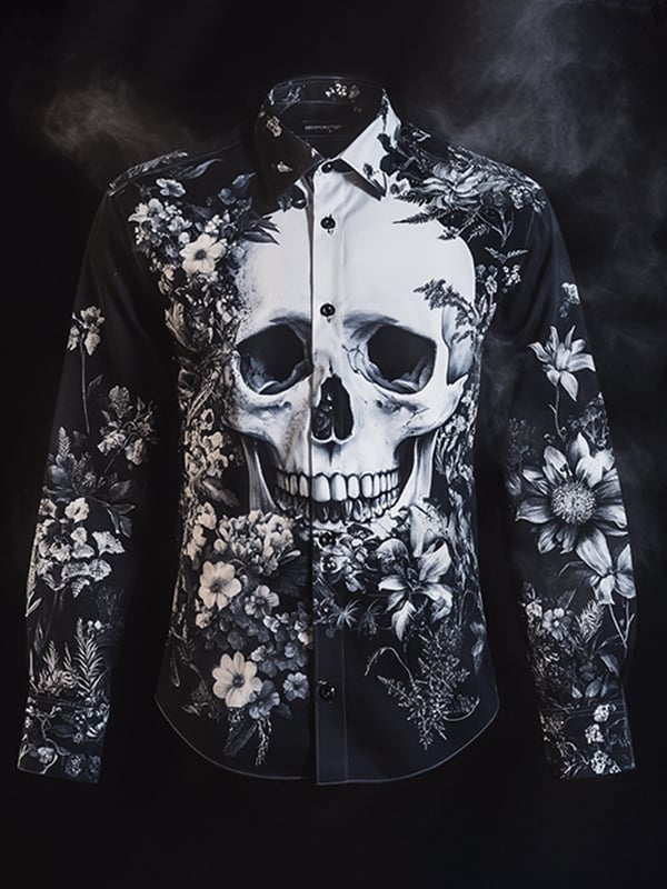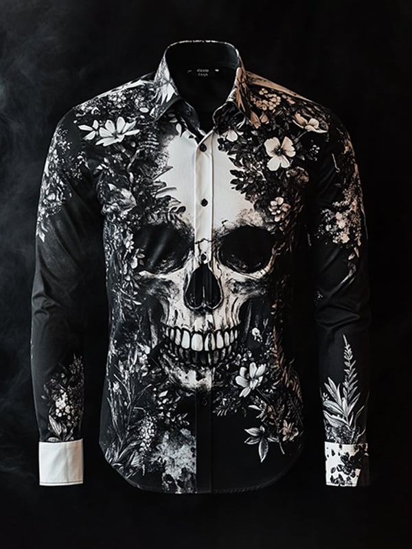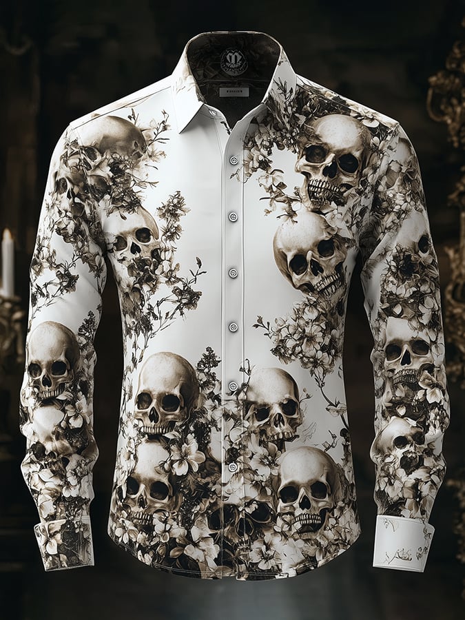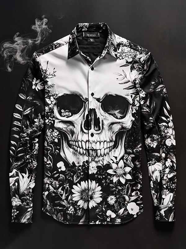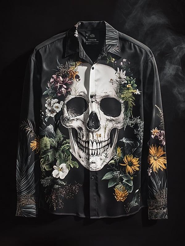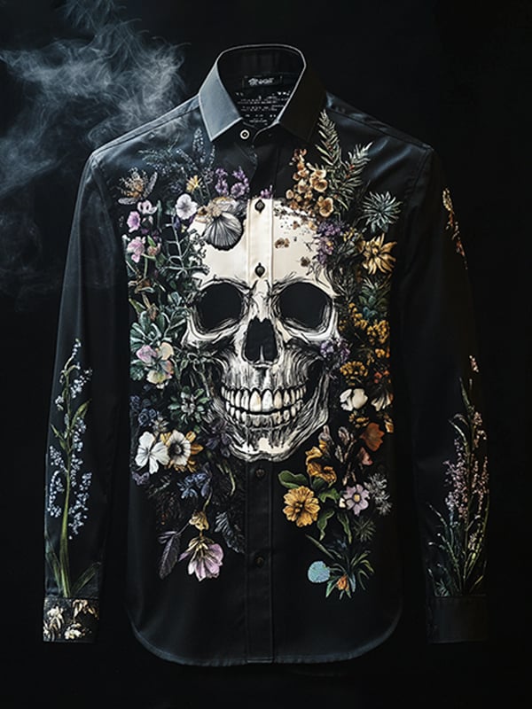 Men's Outdoor Vintage Skull and Floral Long Sleeve Shirt
