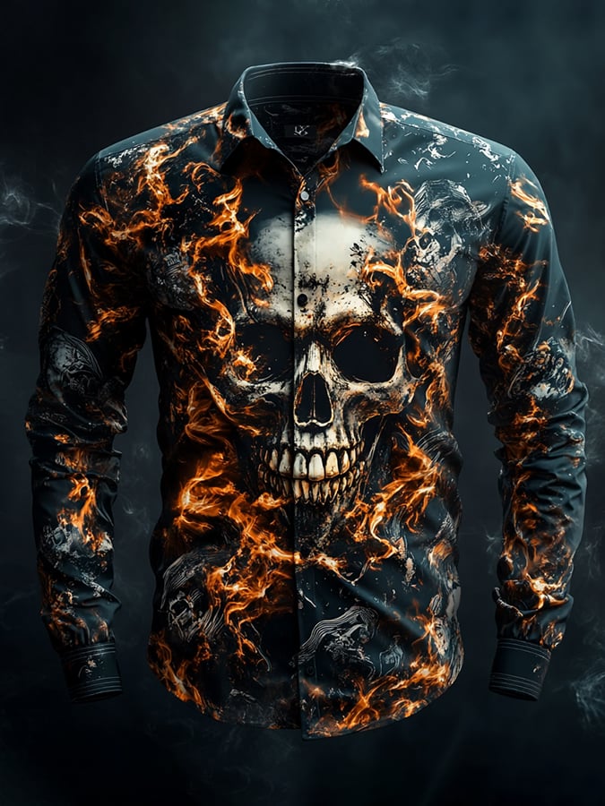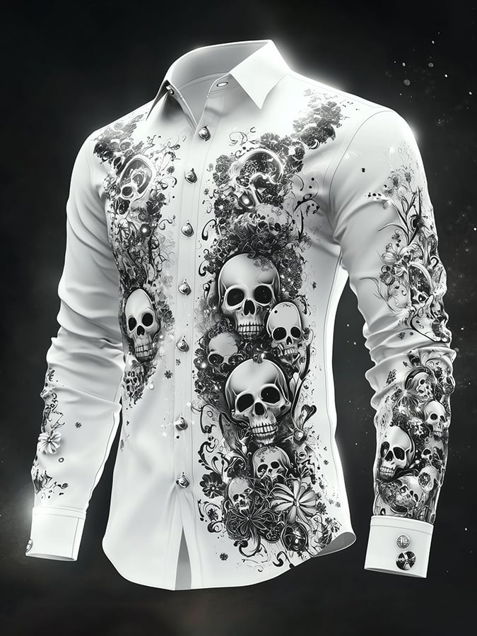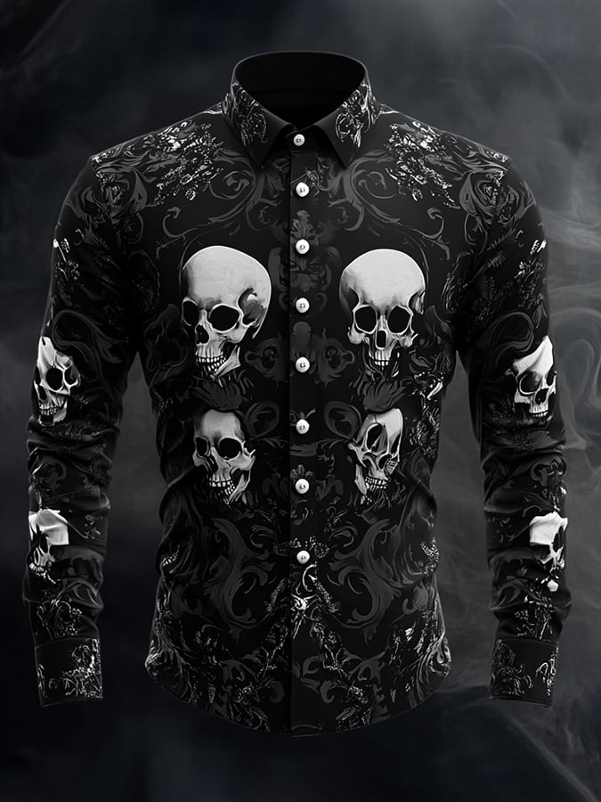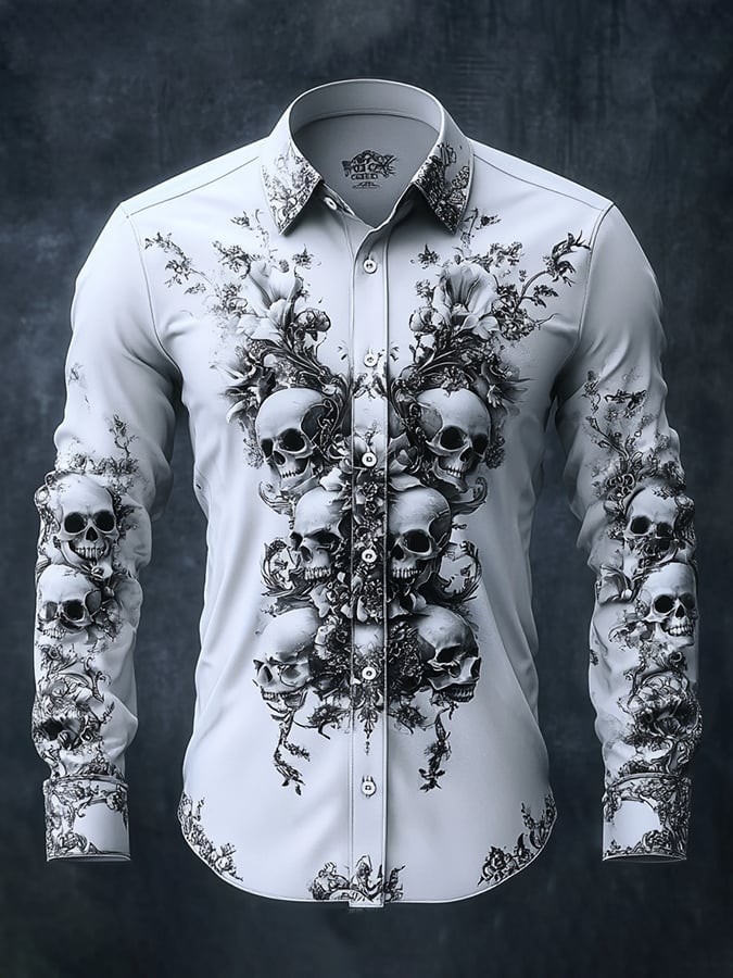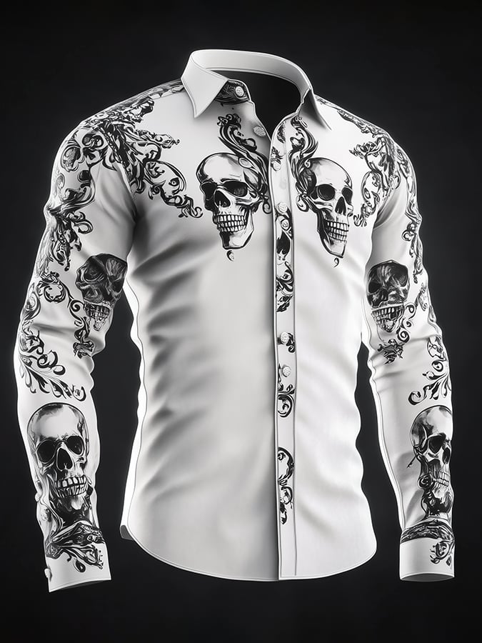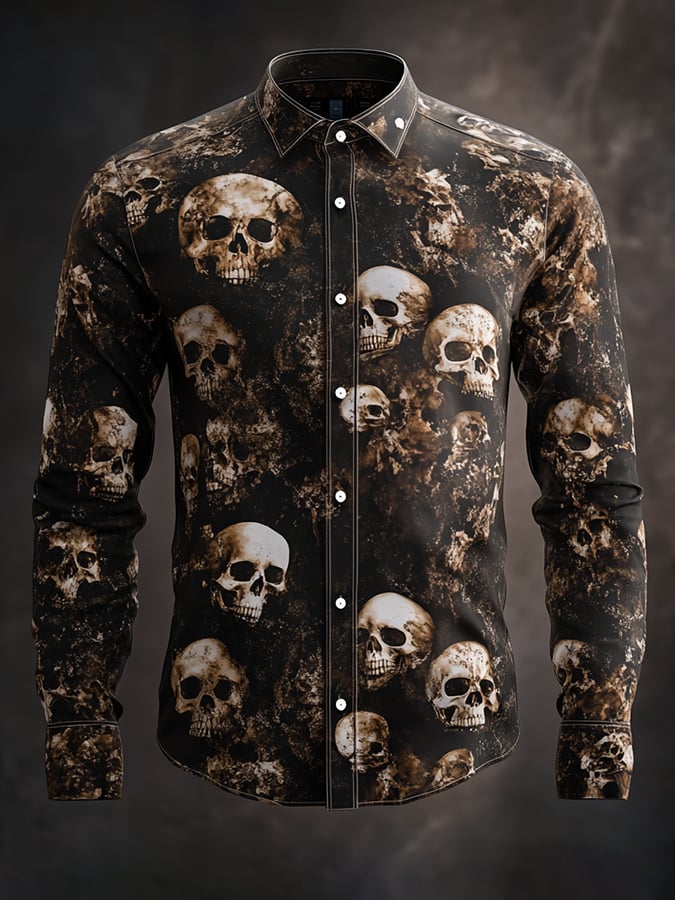 Men's Casual Vintage Brogue Skull Pattern Shirt