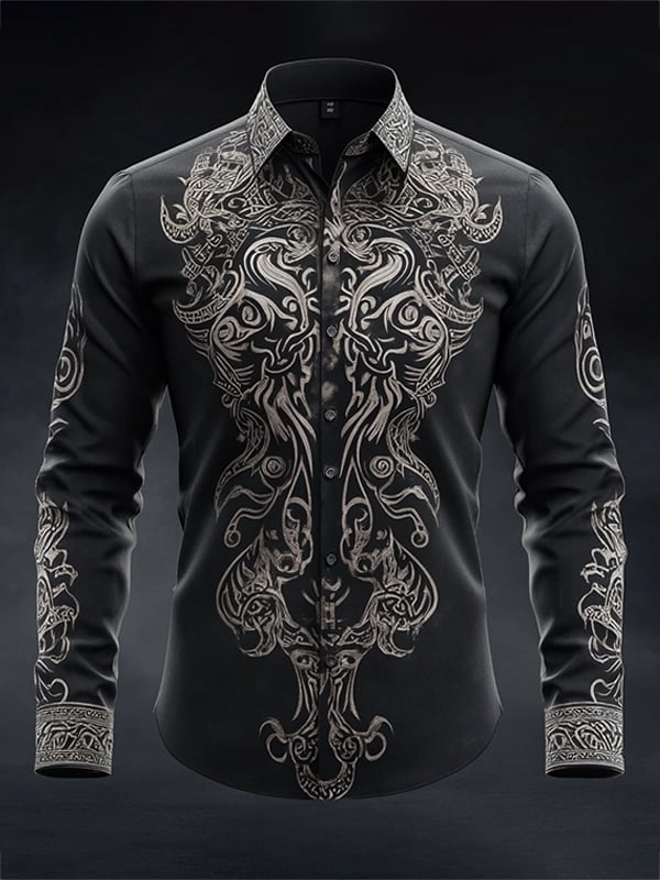Men's Casual Vintage Black Pattern Shirt