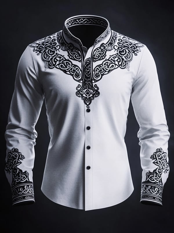 Men's Gothic Light Vintage Pattern Button Long Sleeve Shirt