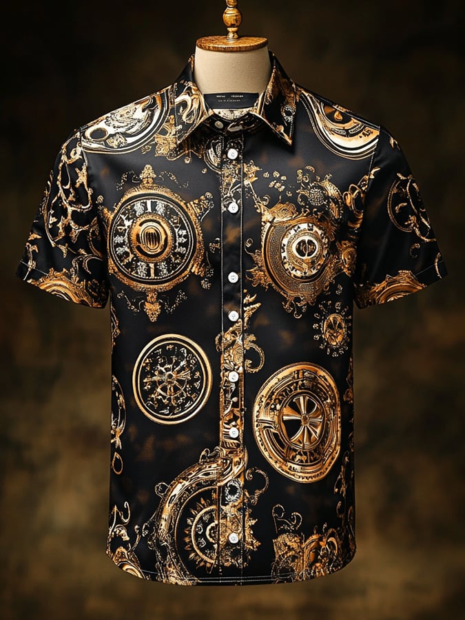 Men's Casual Vintage Floral Skull Print Short Sleeve Shirt