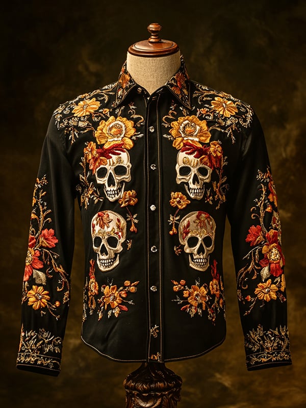 Men's Dark Exquisite Skull Floral Shirt